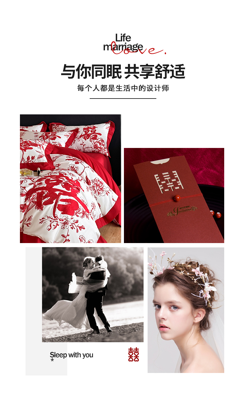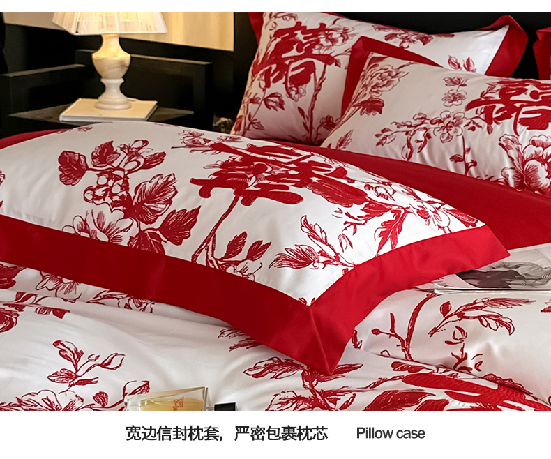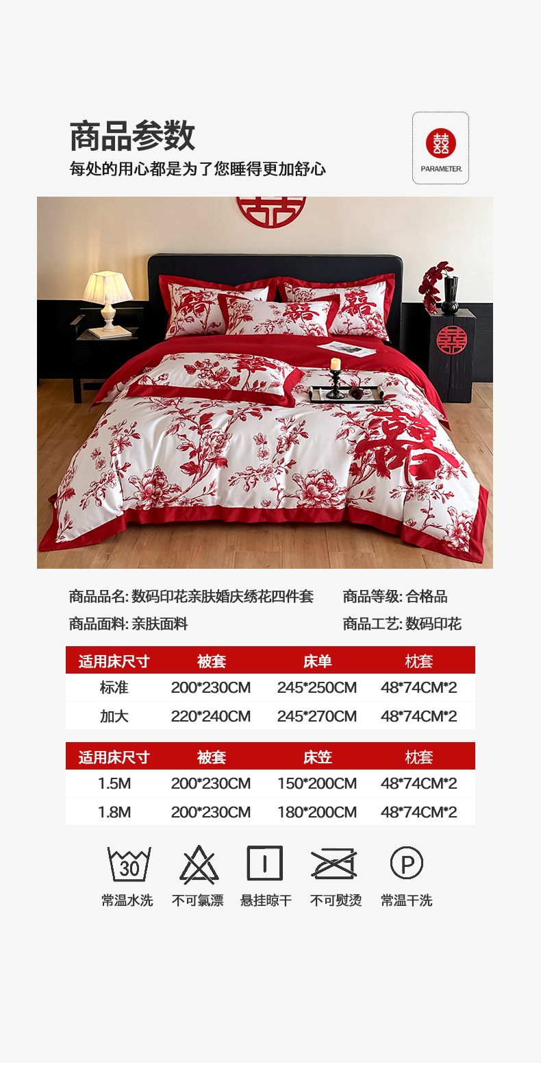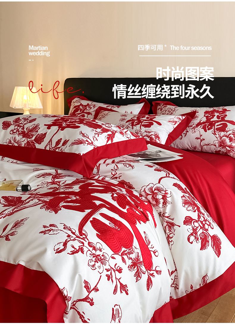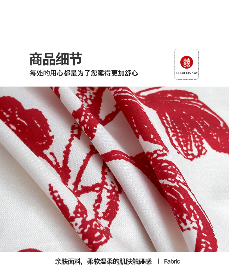 商品名称:置顶家纺 2025新款乐囍婚庆简约亲肤系列四件套 乐囍-奶白+大红