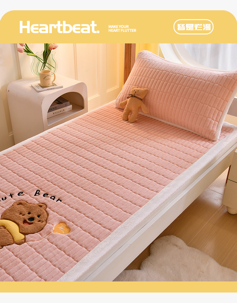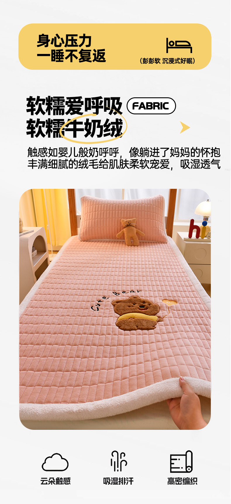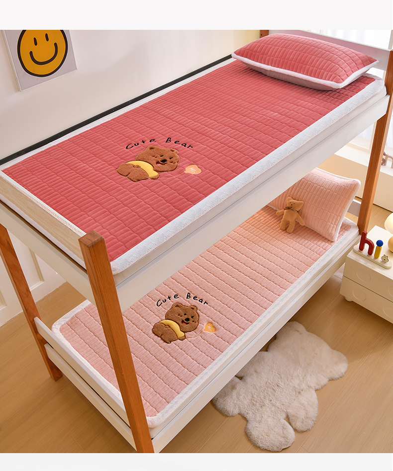 商品名称:悠米悠家 2025新款学生款兔毛绒刺绣夹棉上下铺床褥 小熊-粉色