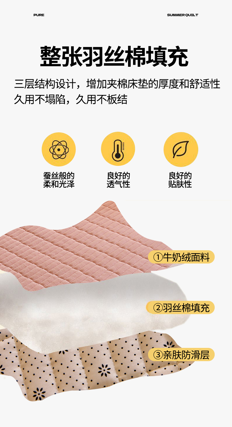(总)悠米悠家 2025新款亲肤加厚棉花夹棉床褥,白色,粉色,灰色,蓝色