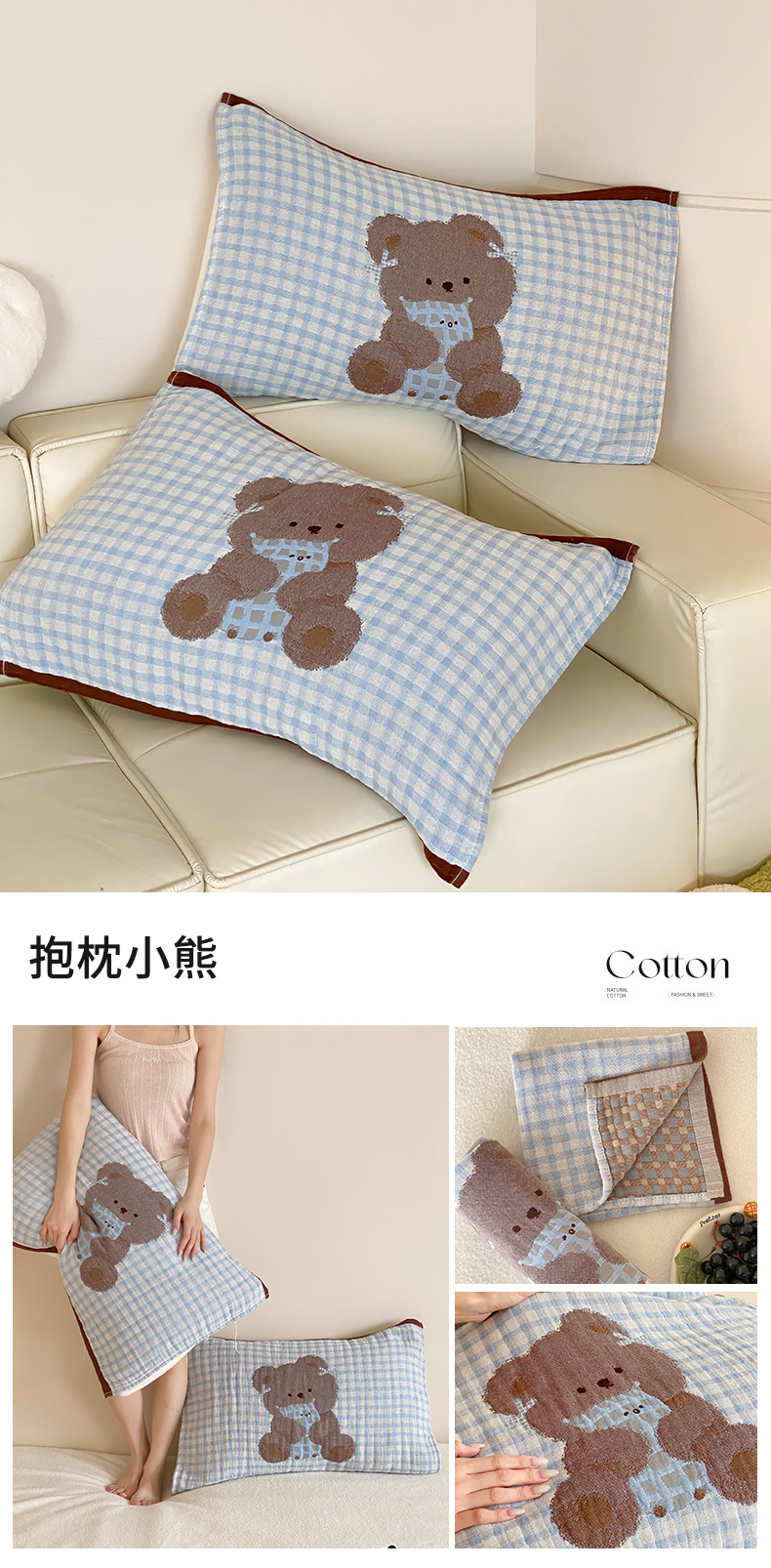 (总)麻依 2025新款安心棉枕巾四层全棉纱布枕头皮,布朗兔,彩虹点点,点点蝴蝶结-粉,点点蝴蝶结-米白,搞怪猫,韩系小樱桃,焦糖草莓,兰溪,漫语,木栖,天猫精灵,小波点,组合图