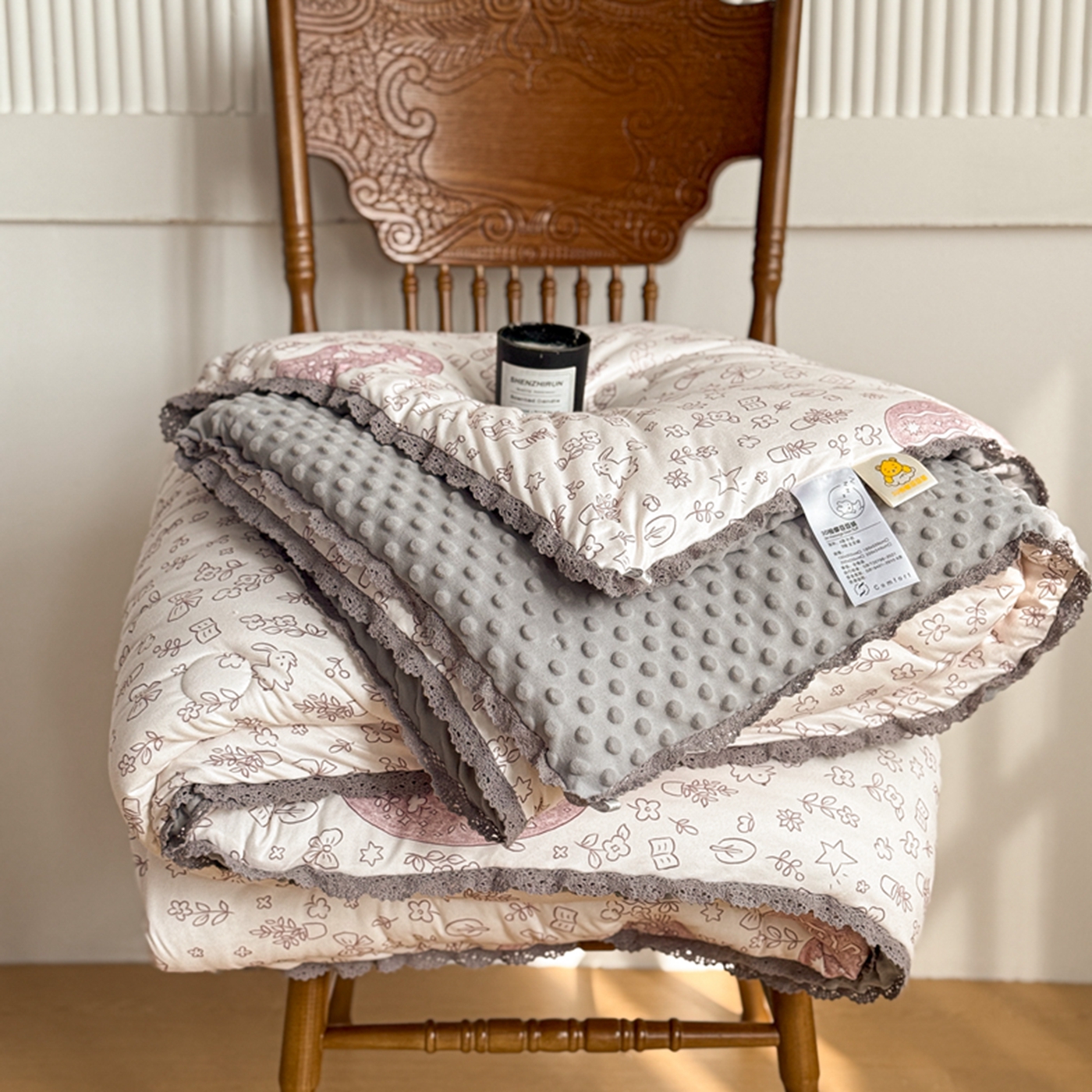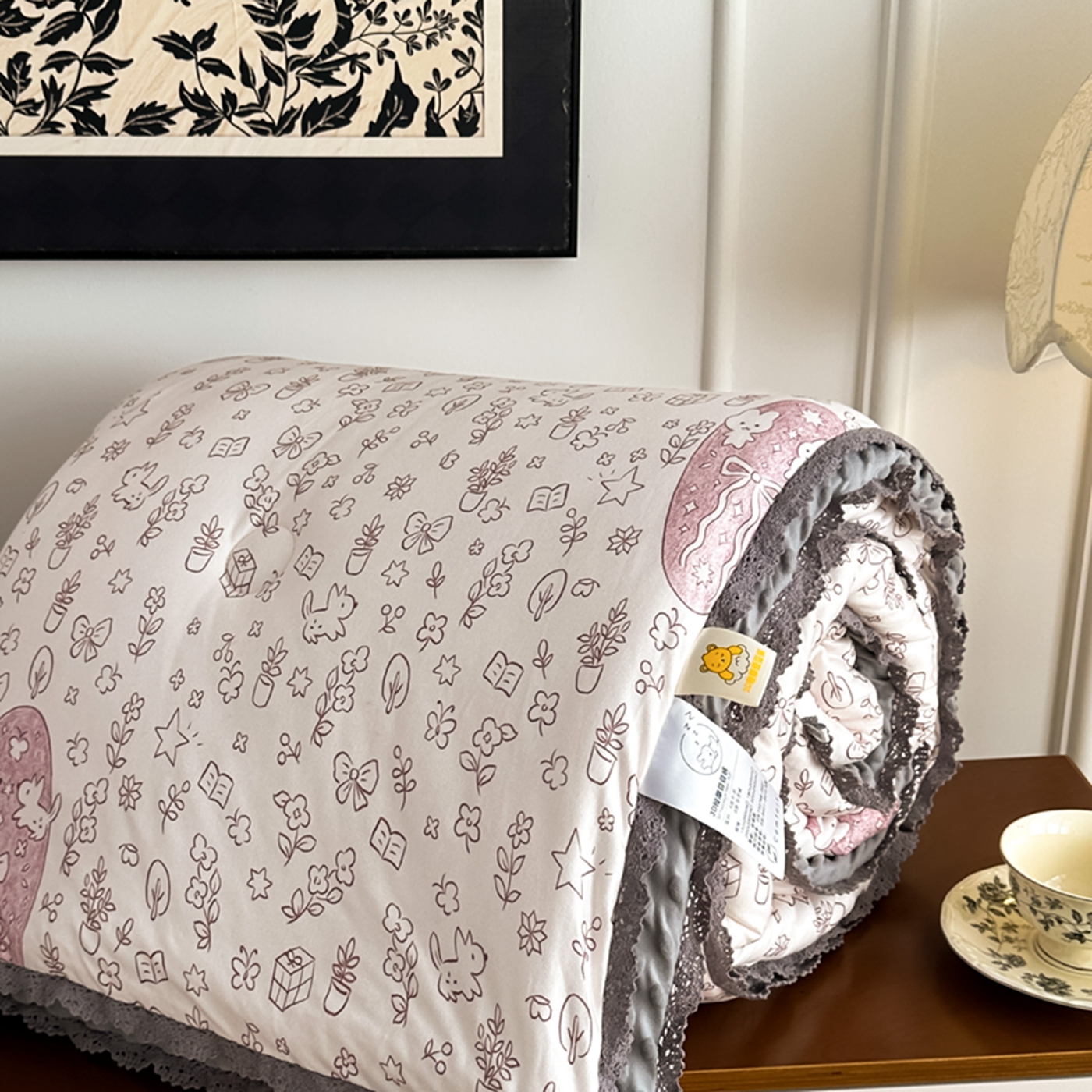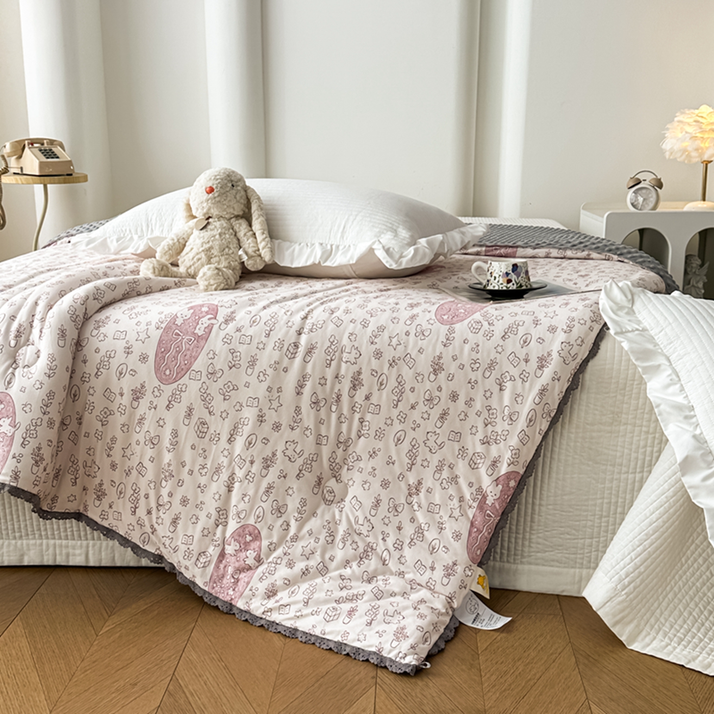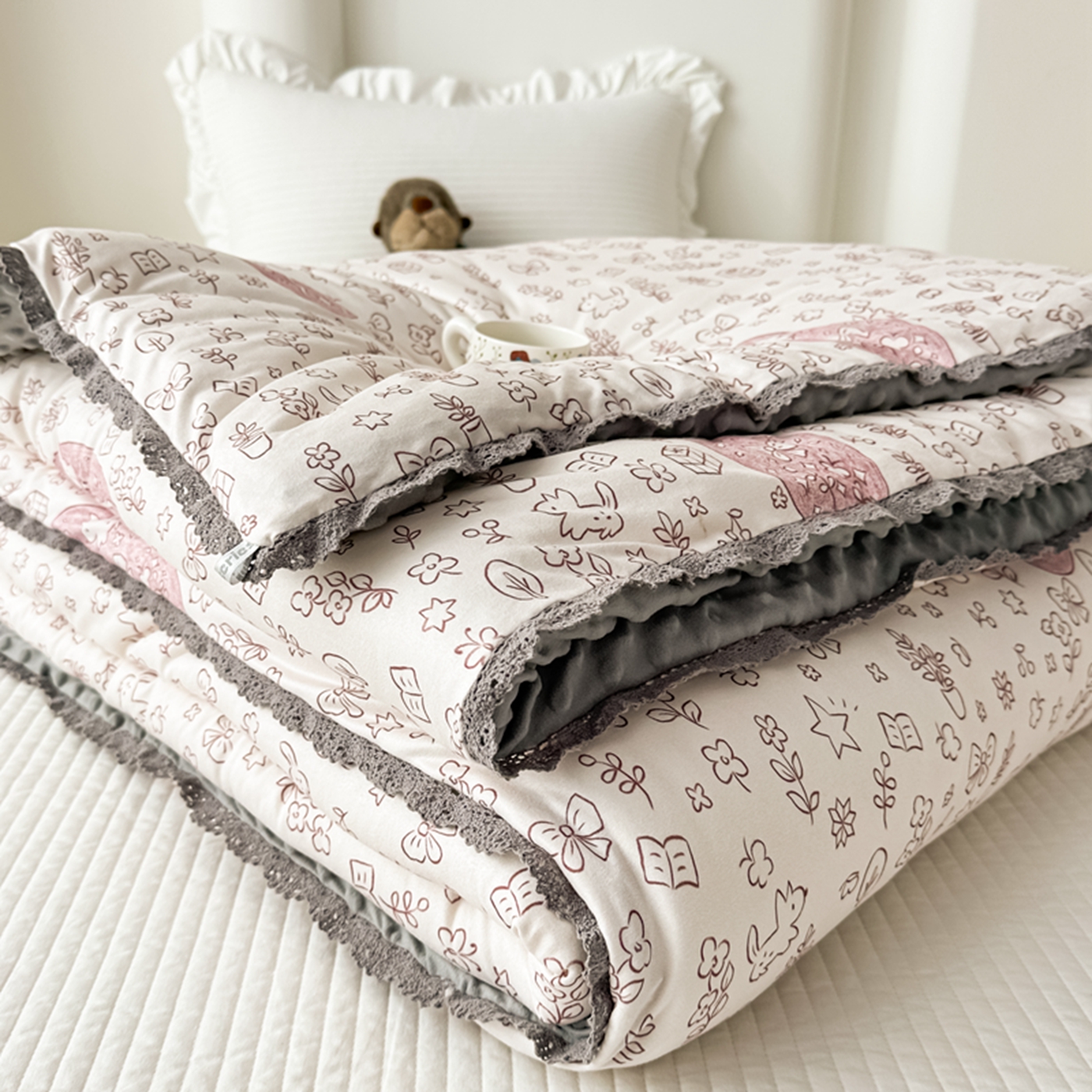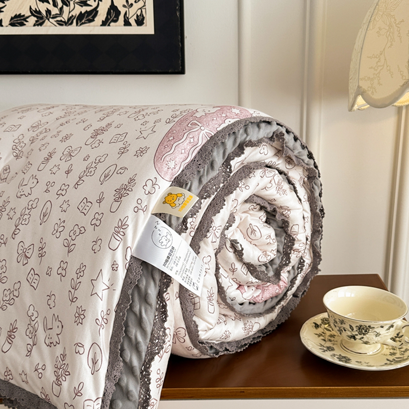 商品名称:睡美美家纺 2025新款秋冬亲肤柔软豆豆绒花边款冬被被芯 小兔森林