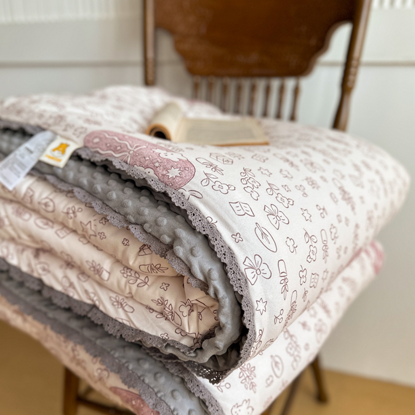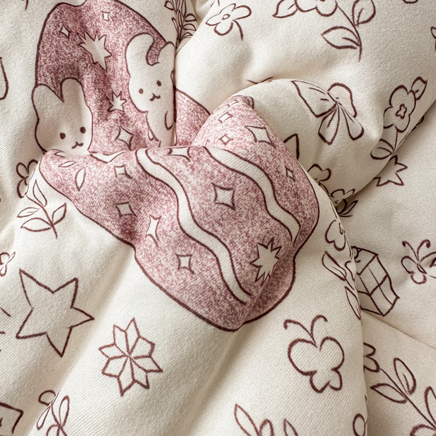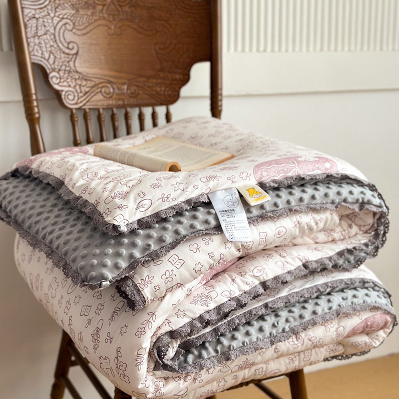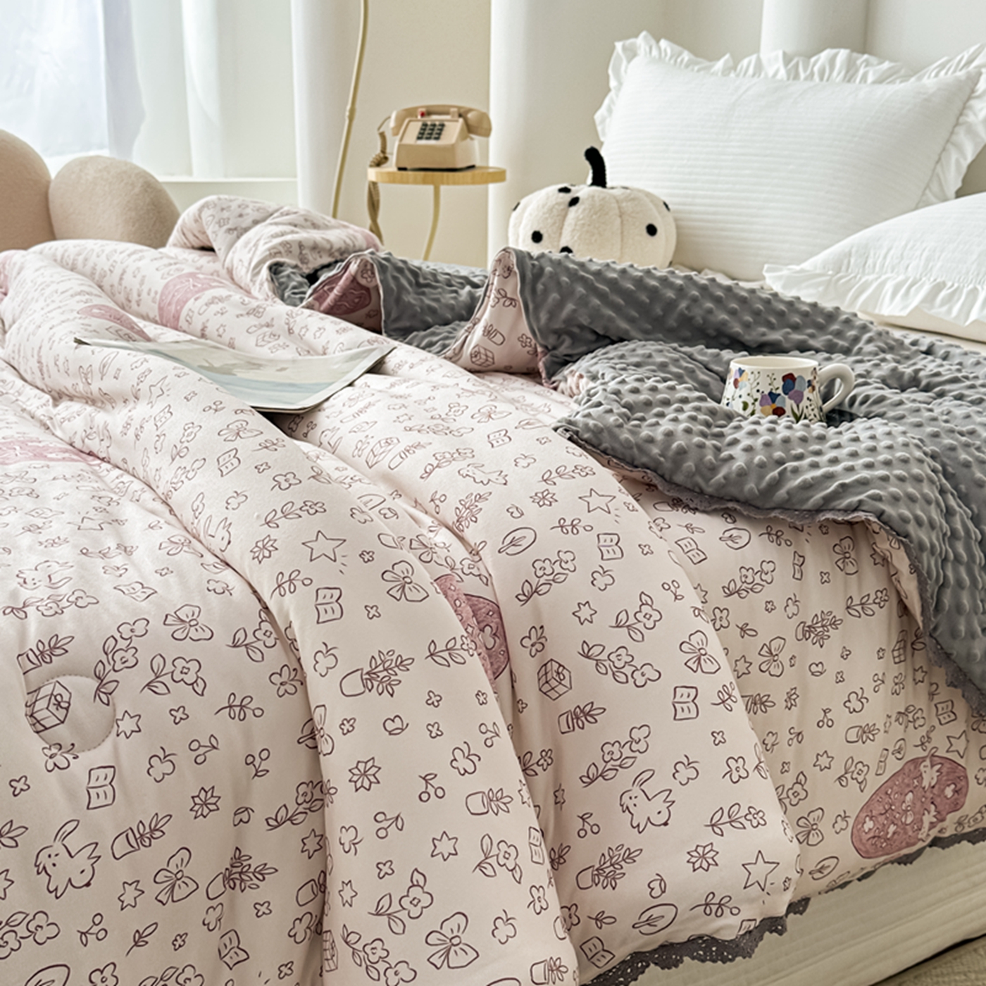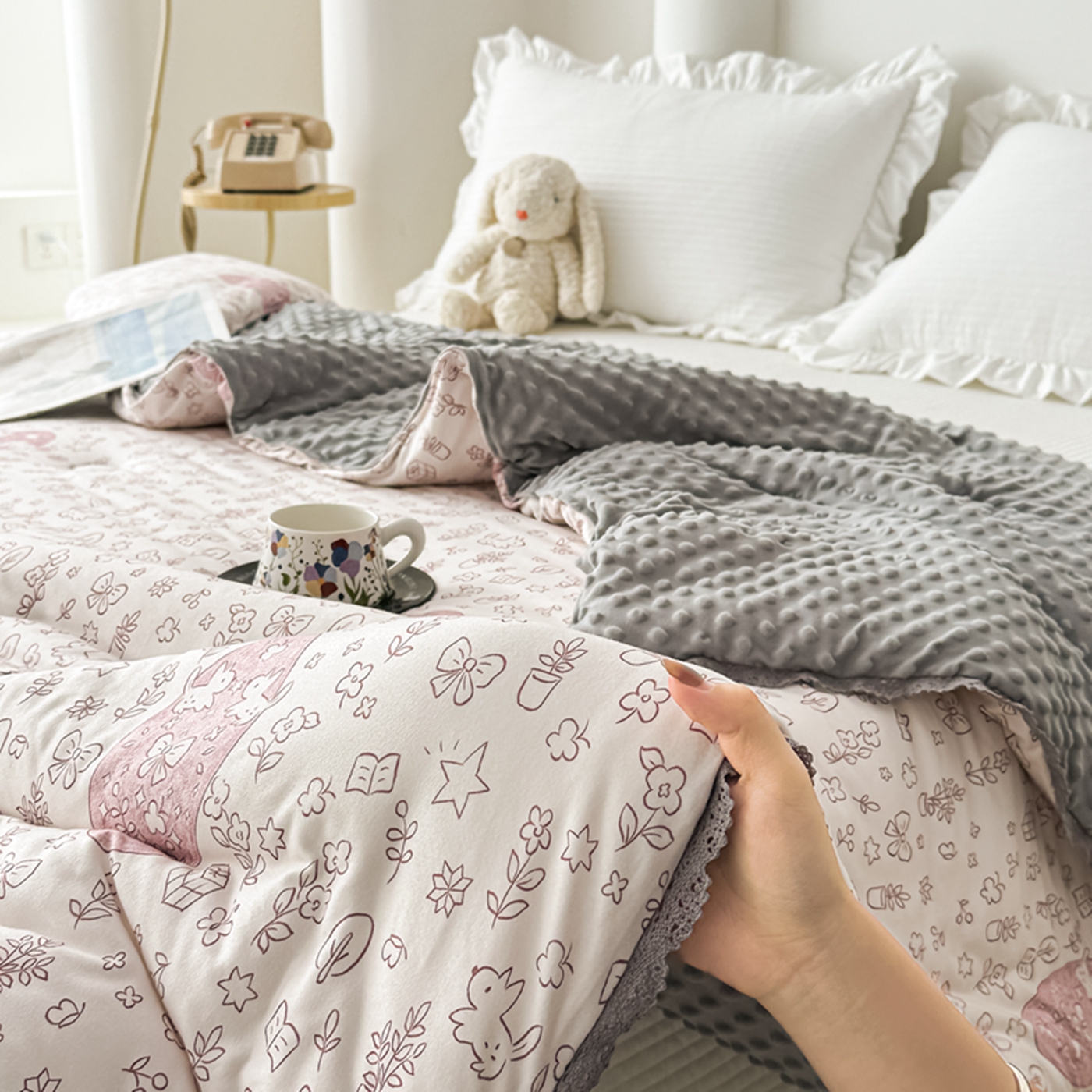 商品名称:睡美美家纺 2025新款秋冬亲肤柔软豆豆绒花边款冬被被芯 小兔森林