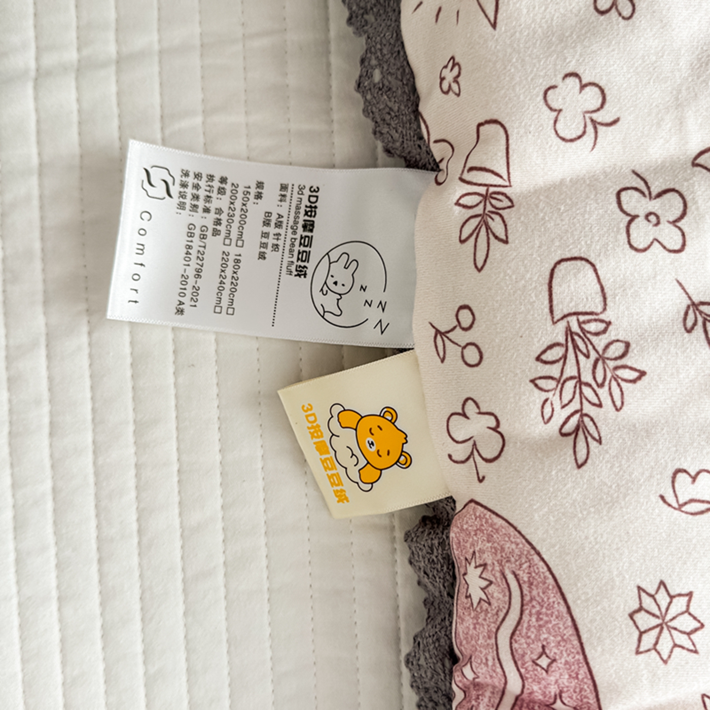 3、通州区市场监督局友情提醒,近期涉及到床上用品不褪色不掉毛不缩水的投诉和以世界知名品牌图案为面料的床品举报较多。请各商家自检自查,对照整改或进行下架处理。