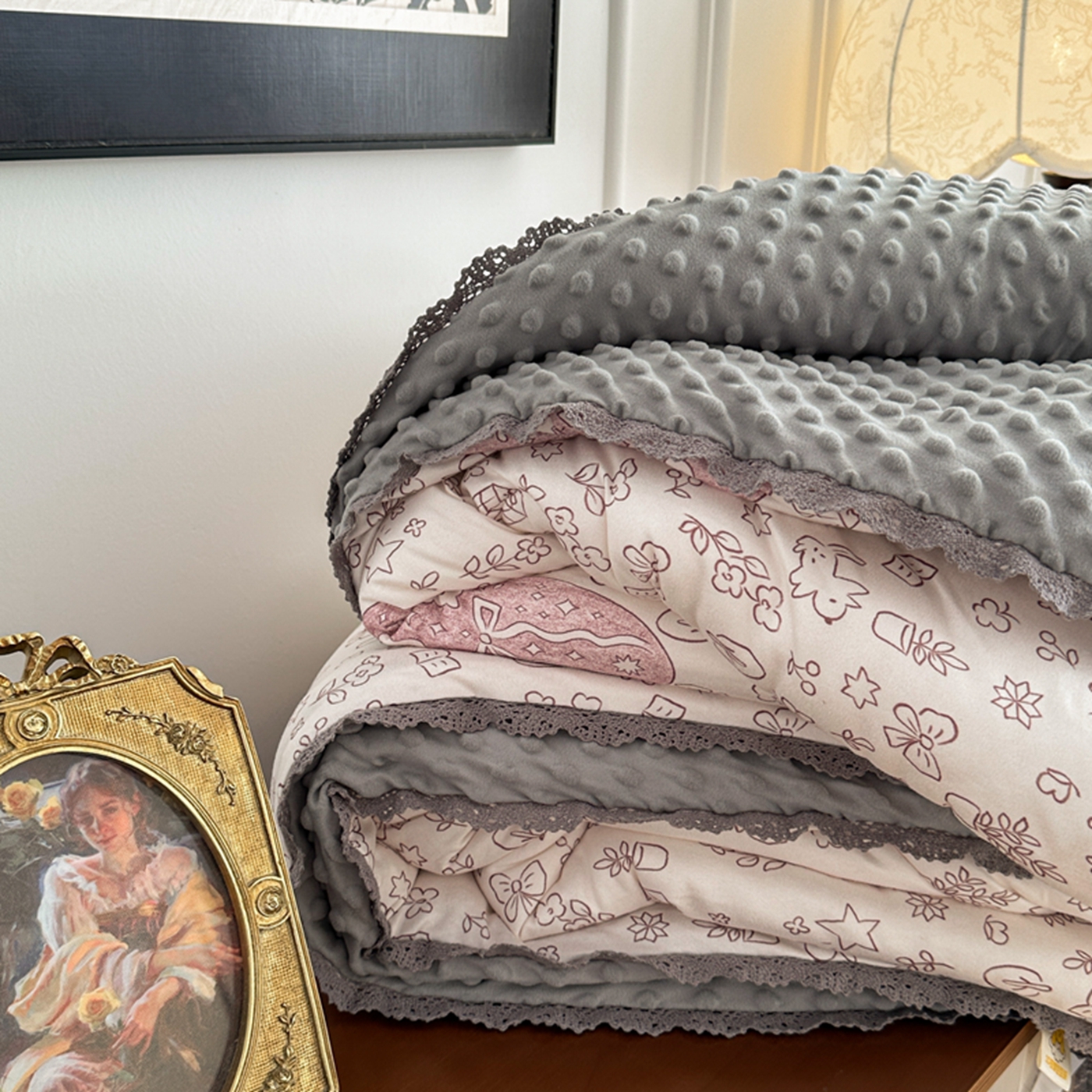 (总)睡美美家纺 2026新款A类古法水洗棉法式花边四件套,彩虹小马,春日絮语,春野,粉豹纹,粉雾蔷薇,粉漾,格纹小象,海盐奶酪,花千朵,花田兔,灰棠,剪秋,乐町小马,美式,梦华录,梦幻格趣,梦幻灰,梦露,木马乐园,奶萌喵咖,南瓜童话,俏皮狗,青花瓷,赛琳娜,森屿,疏影,水晶葡萄,甜粉小窝,甜心萌宠,小黄花,小幸运-蓝,絮语,鱼多多