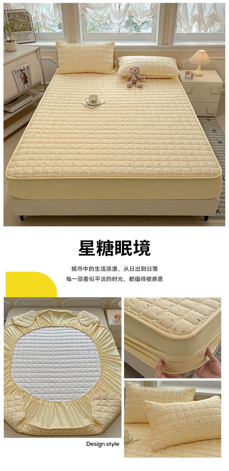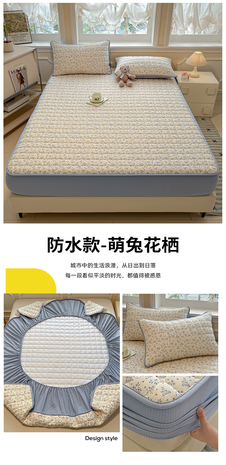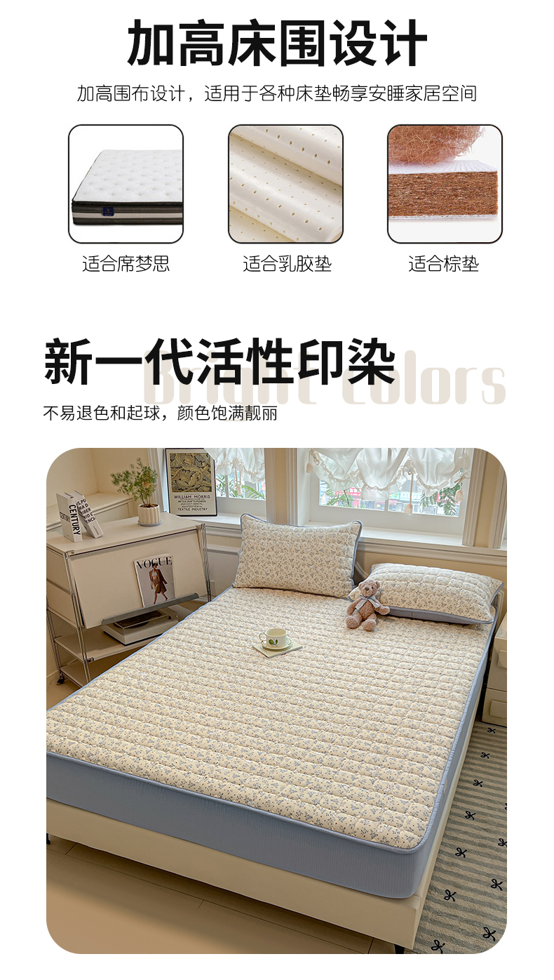 • 91家纺网 家纺一手货源 找家纺 九亭家纺 2025新款A类皱皱纱印花防水夹棉床笠 防水款-星糖眠境