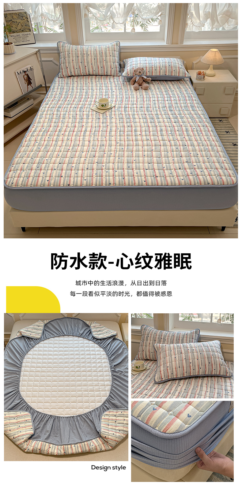 (总)九亭家纺 2025新款A类大豆纤维防水夹棉床笠,防水百叶粉,防水百叶灰,防水百叶咖,防水百叶蓝,防水百叶绿,防水百叶米,防水百叶白
