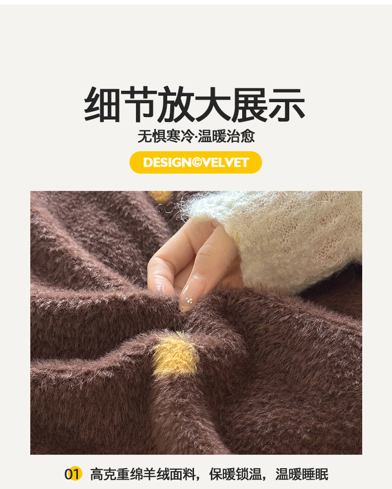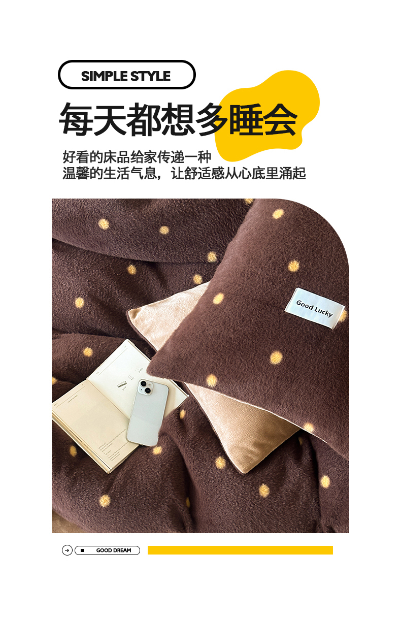 商品名称:桃子家居 2025新款A类高级仿生绵羊绒织标工艺复古简约秋冬限定款加厚牛奶绒系列四件套 绵羊绒-棕咖点点