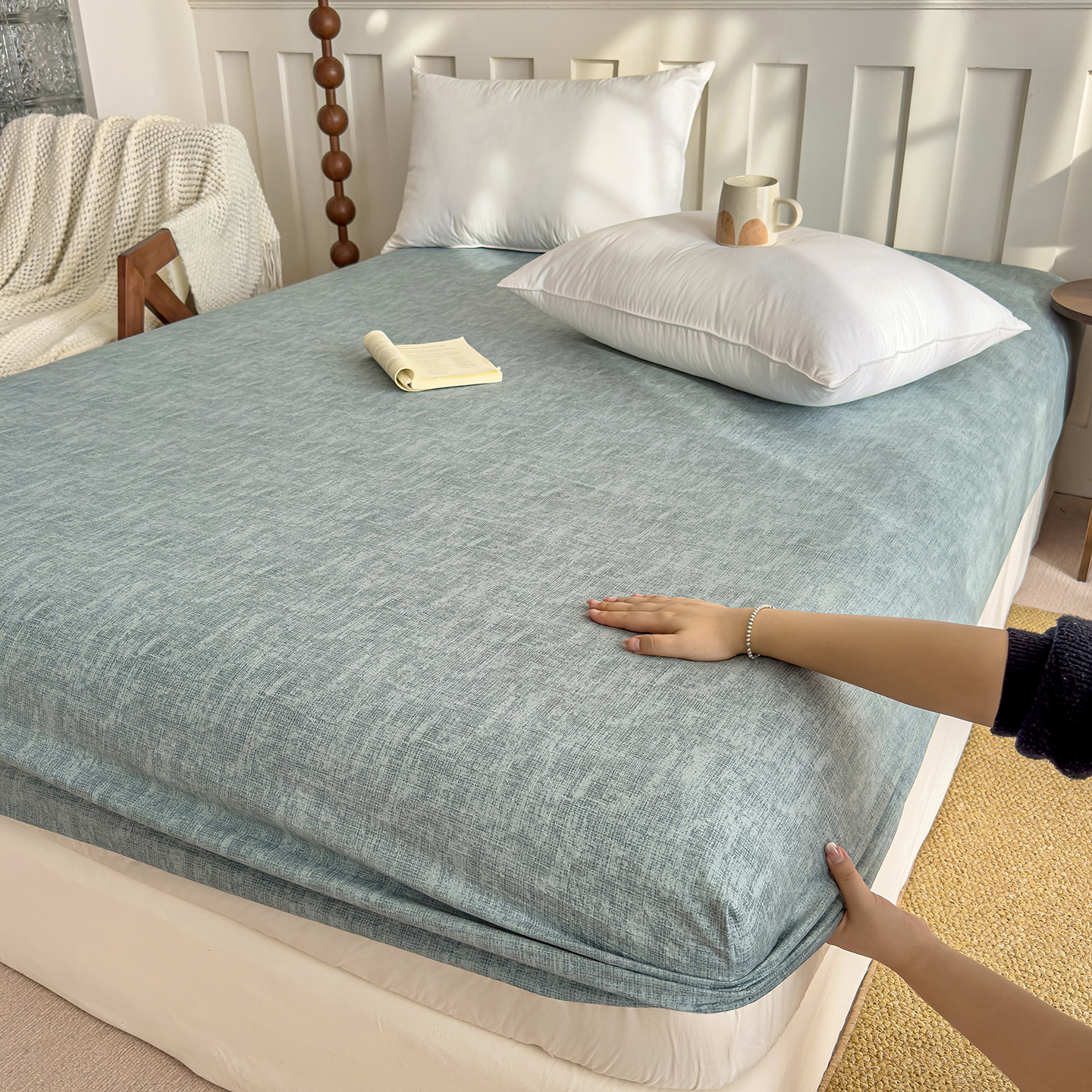 (总)灿哈家纺 2025新款纯色简约麻床笠单品床笠床笠单件单床笠,草绿,豆沙,湖蓝,蜜粉,葡萄紫,浅咖,深咖,银灰