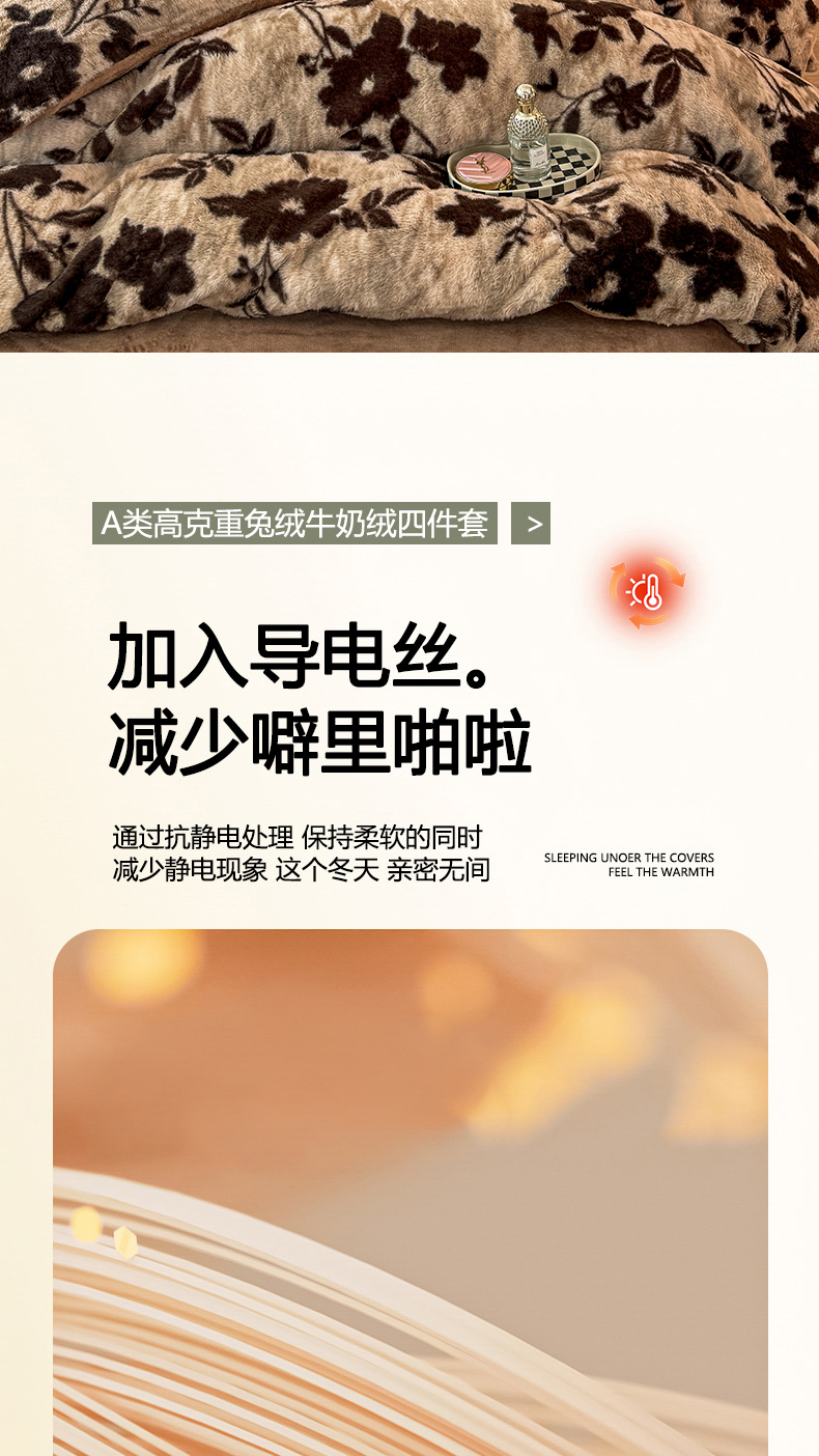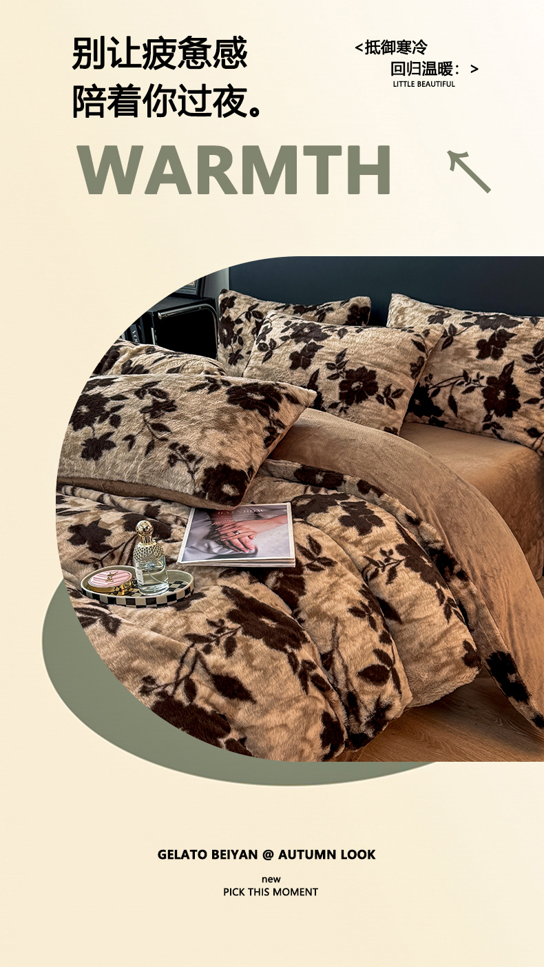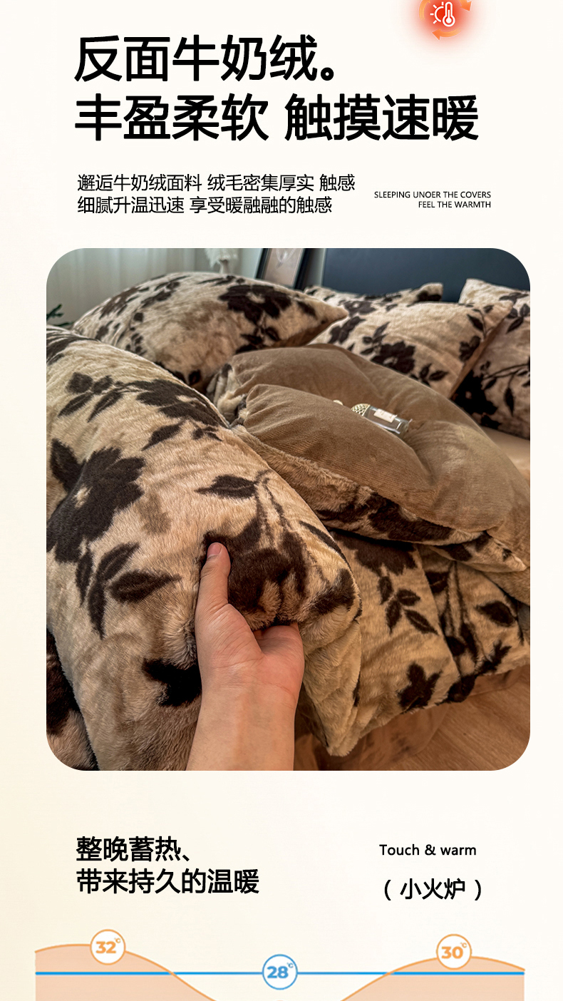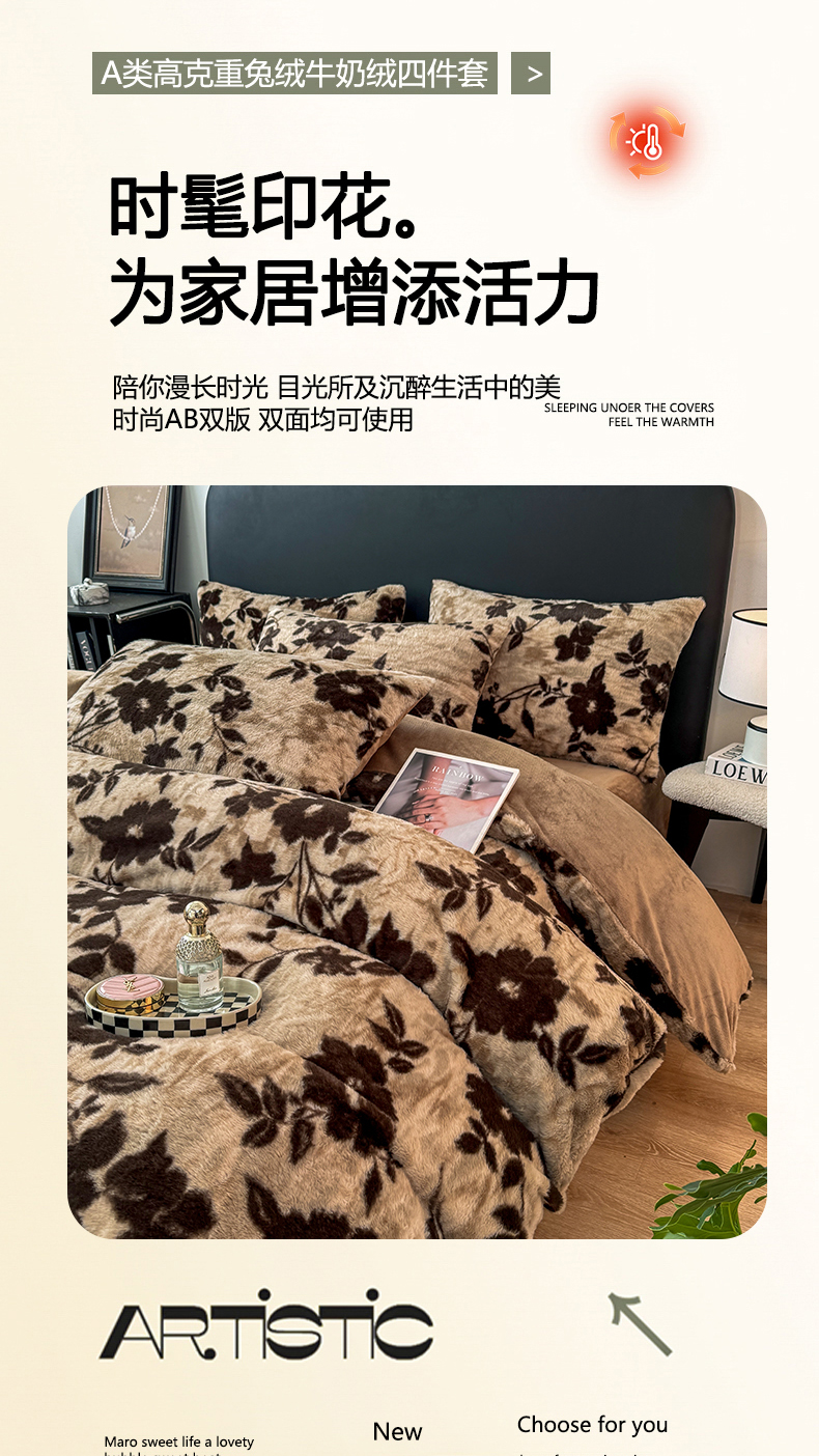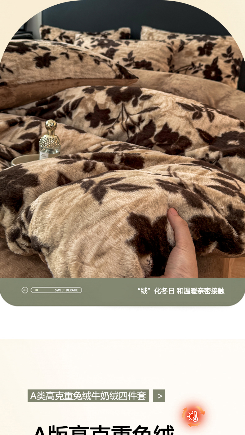 当前位置: 91家纺网 > 商品网购 > 床品套件 > 四件套 > 牛奶绒四件套 > 乐窝家纺仓储 2025新款【8斤重】轻奢复古高克重美拉德兔兔绒牛奶绒床单款床笠款床盖款四件套单床单单被套枕套(日发50套优惠8元一套) 花语