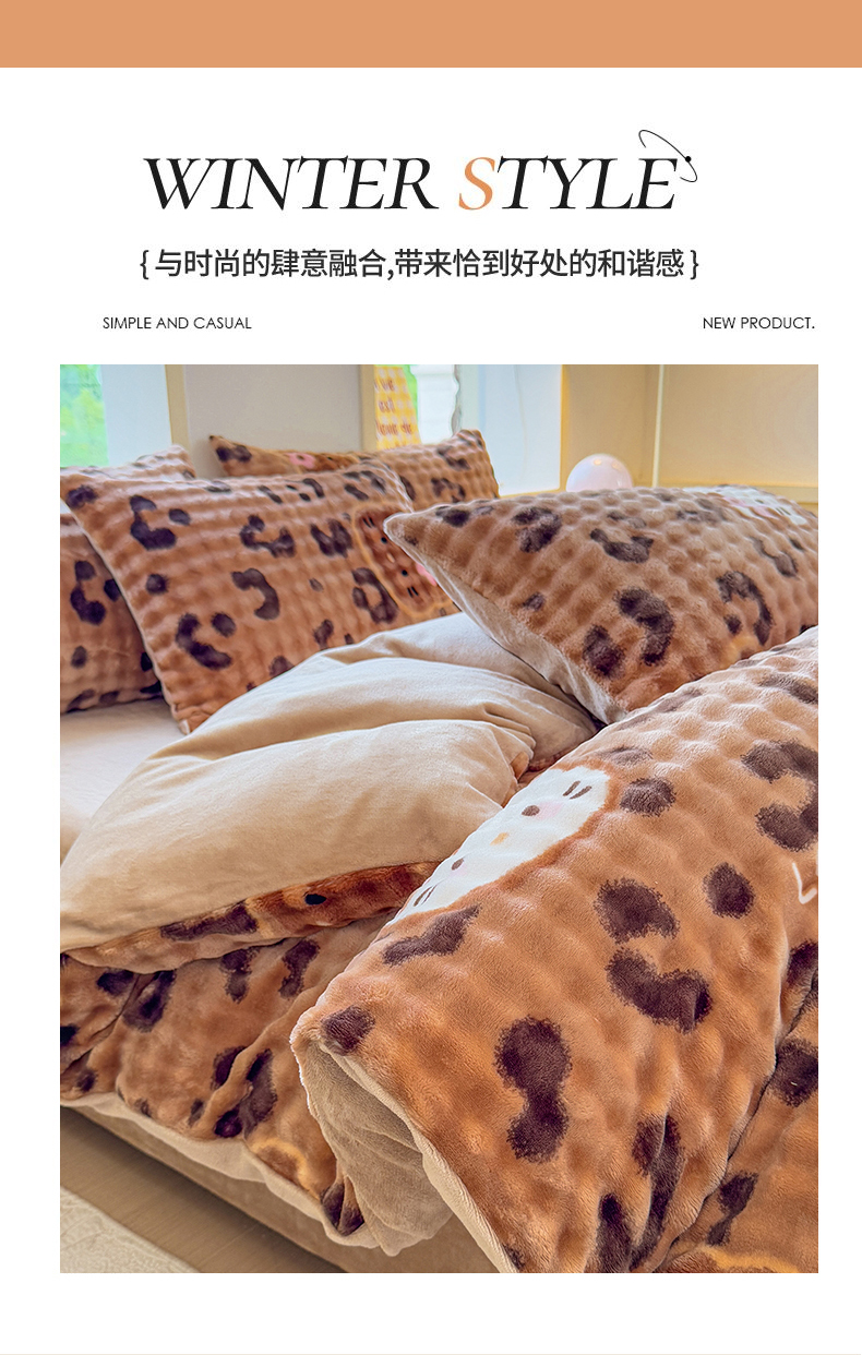 (总)仟岸家纺 2025新款牛奶绒印花四件套,豹纹咖,草莓喵,蝴蝶,蝴蝶结爱心,花妖白,花妖黑,花枝绿,玫瑰灰,玫瑰咖,顽皮狗,小点点