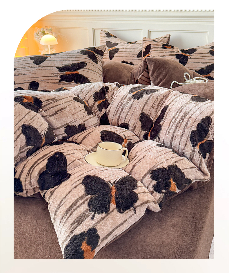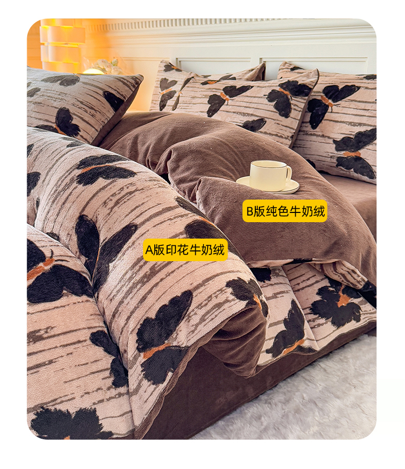 (总)仟岸家纺 2025新款牛奶绒印花四件套,豹纹咖,草莓喵,蝴蝶,蝴蝶结爱心,花妖白,花妖黑,花枝绿,玫瑰灰,玫瑰咖,顽皮狗,小点点