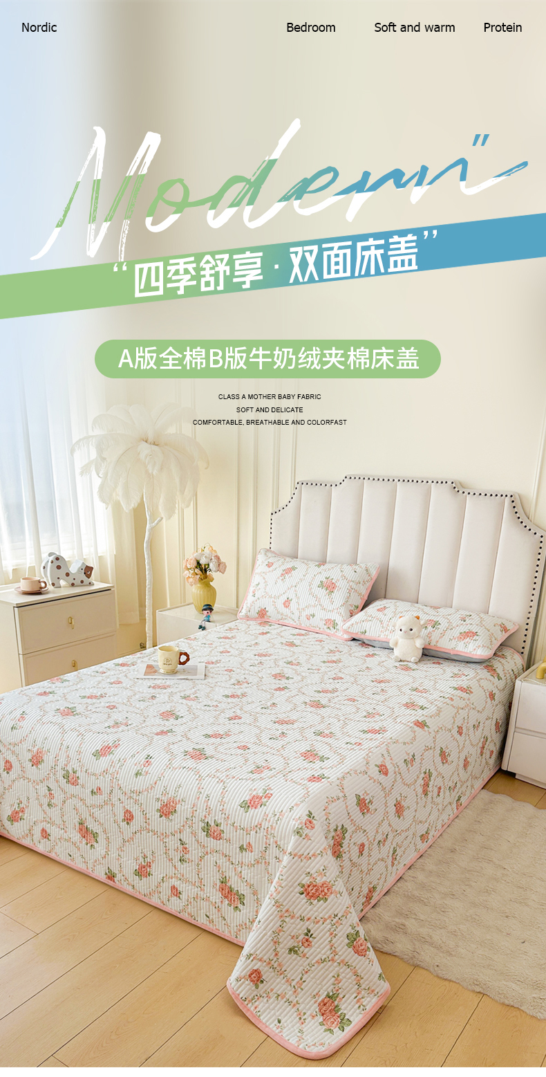 • 91家纺网 家纺一手货源 找家纺 LIFE.丽芙 2025新款A类四季可用A版全棉数码印花B版牛奶绒单件夹棉炕盖床盖三件套 床盖-花锦