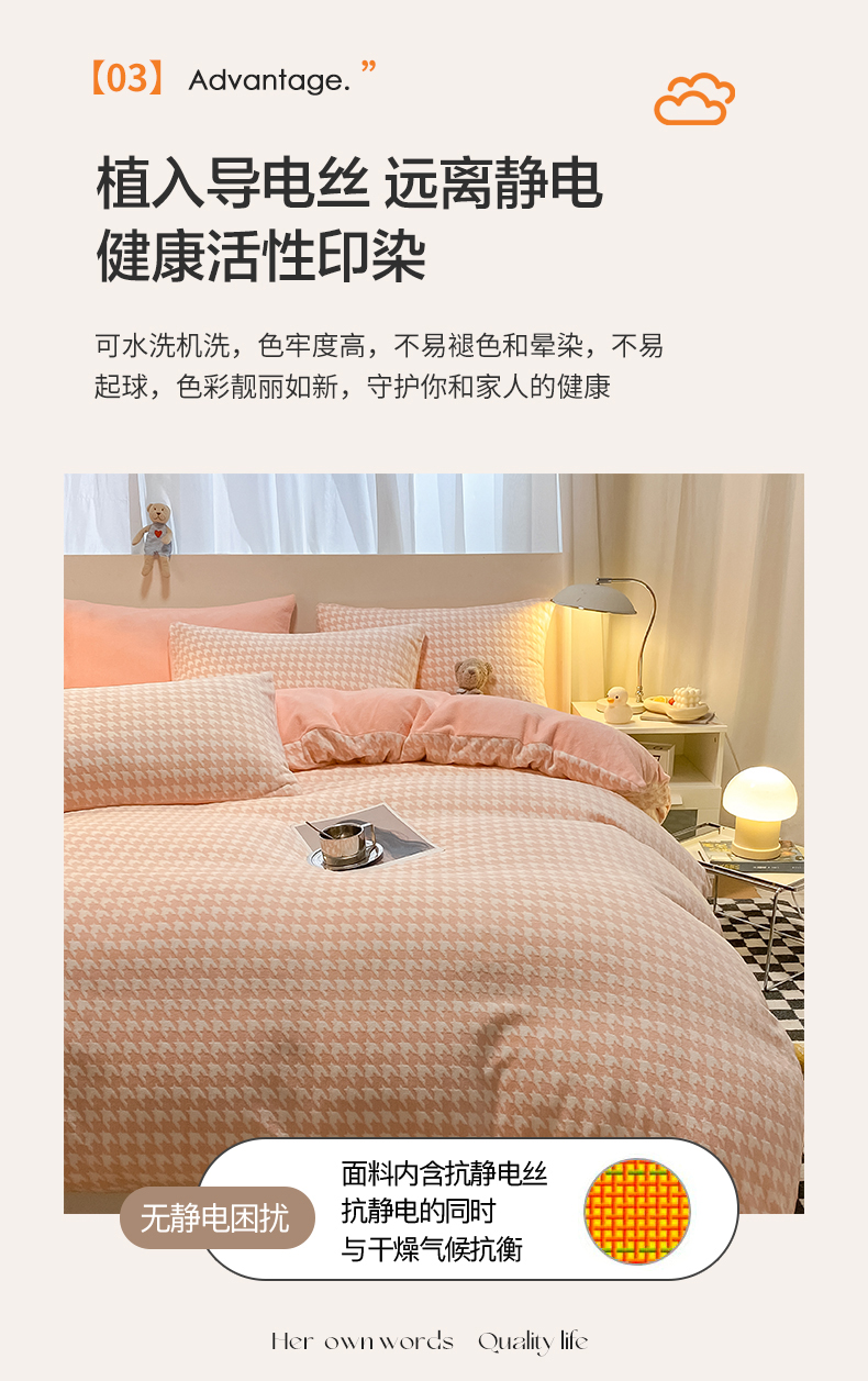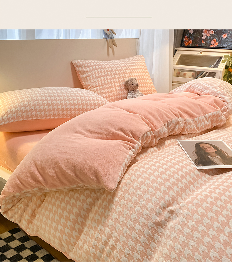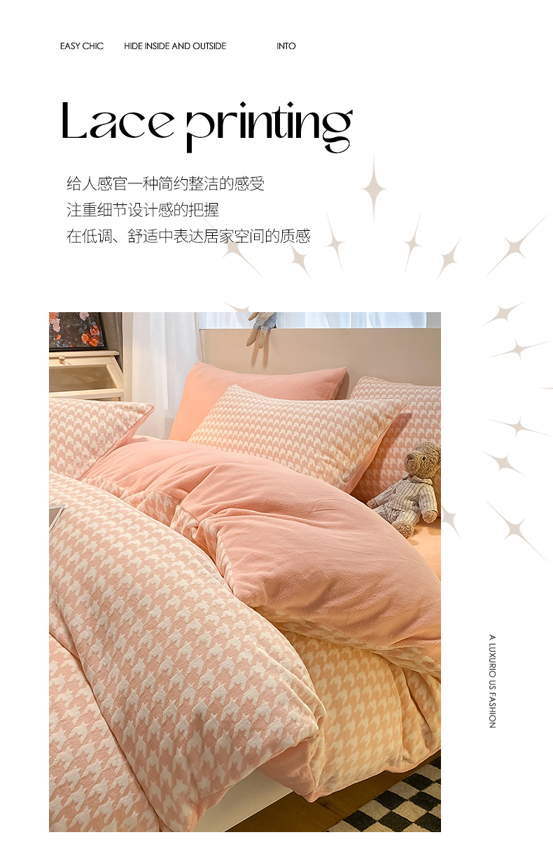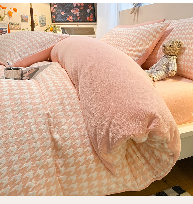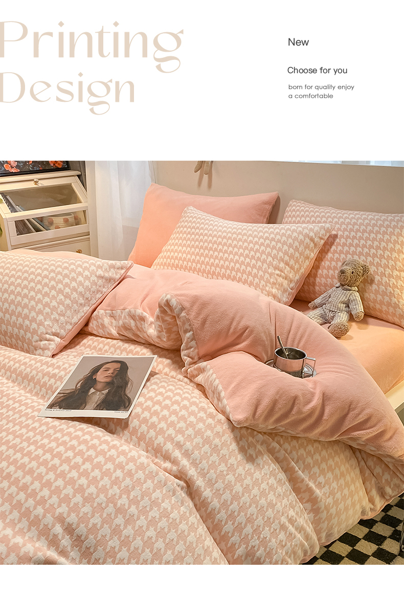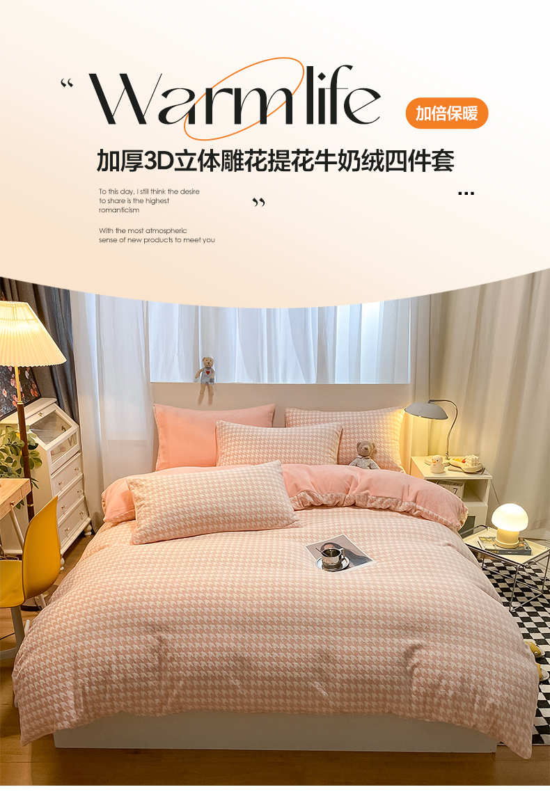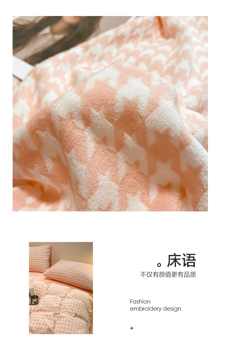 当前位置: 91家纺网 > 商品网购 > 床品套件 > 四件套 > 牛奶绒四件套 > 如一 2025年3D立体雕花牛奶绒四件套 千鸟格粉