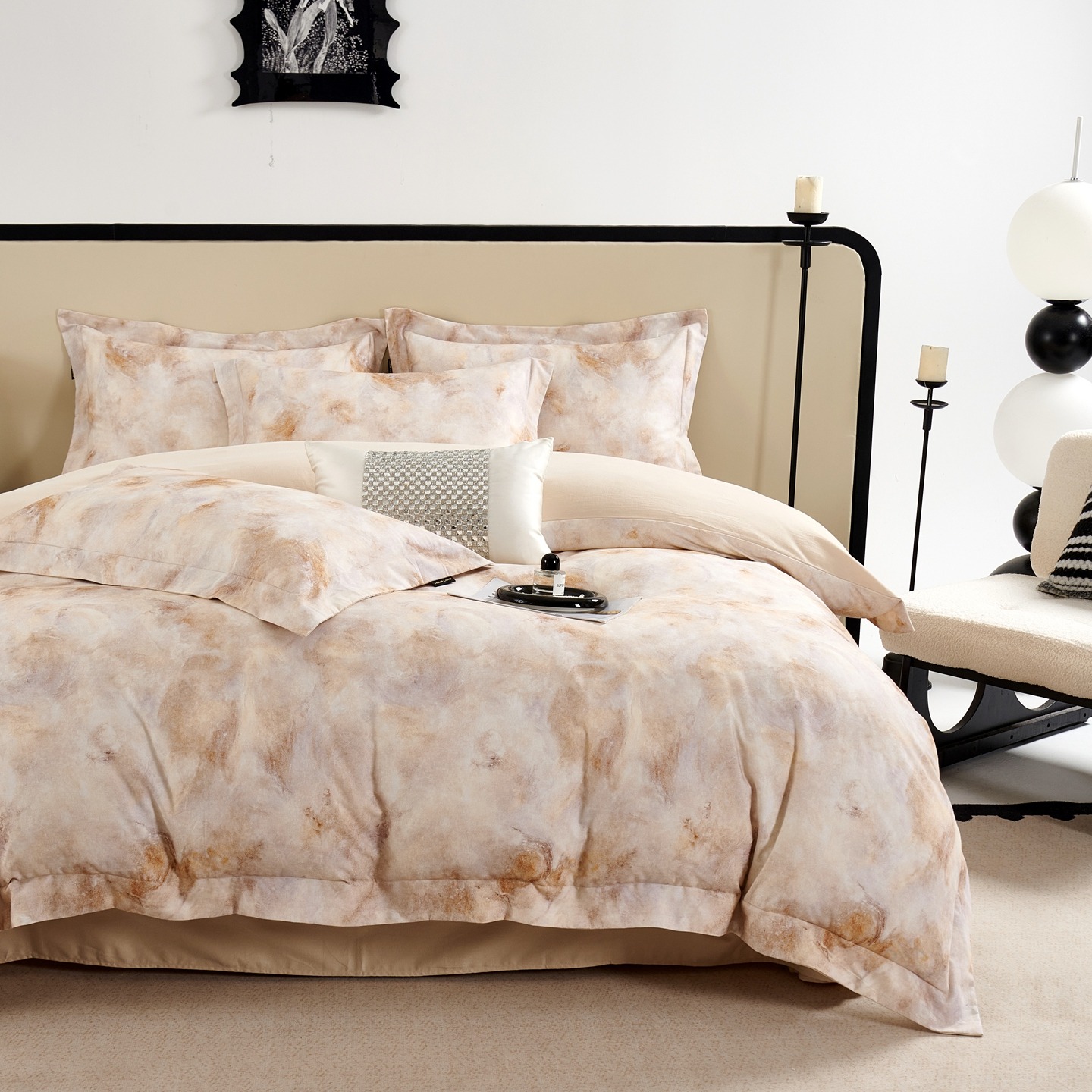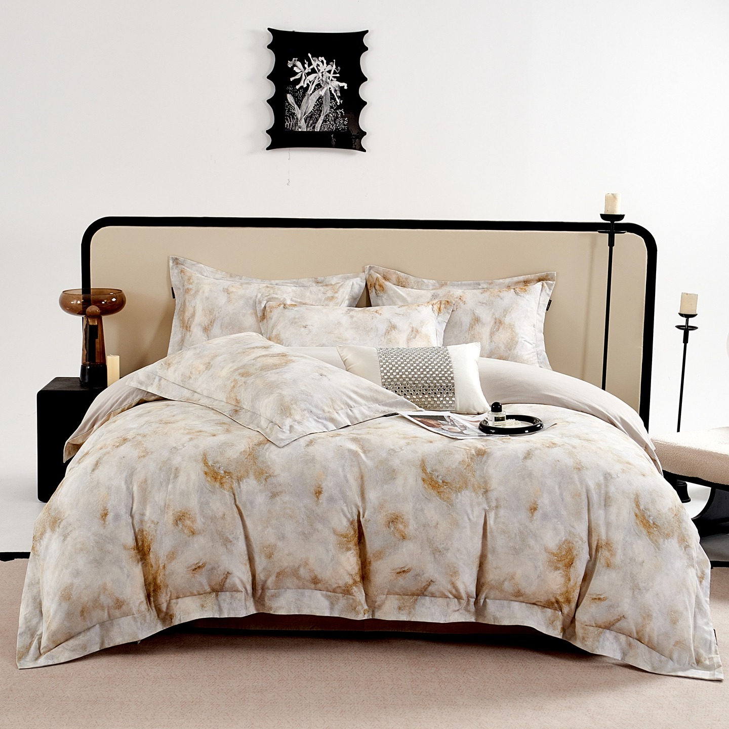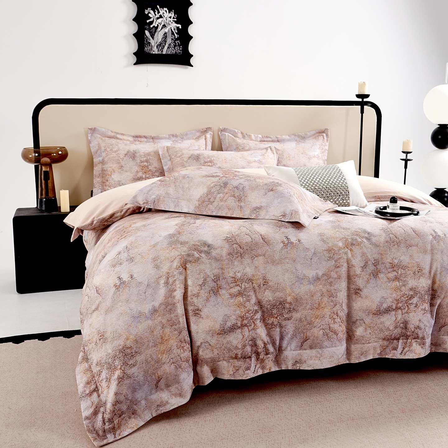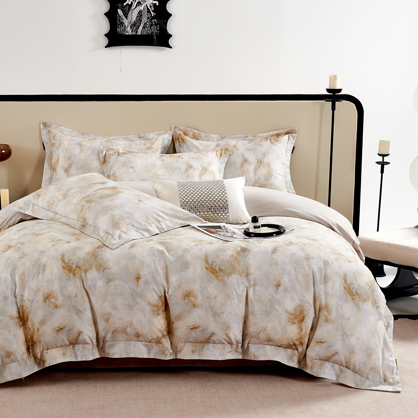 芙绣家纺 2025新款纯棉全棉磨毛宽边压线复杂款四件套 古韵-咖