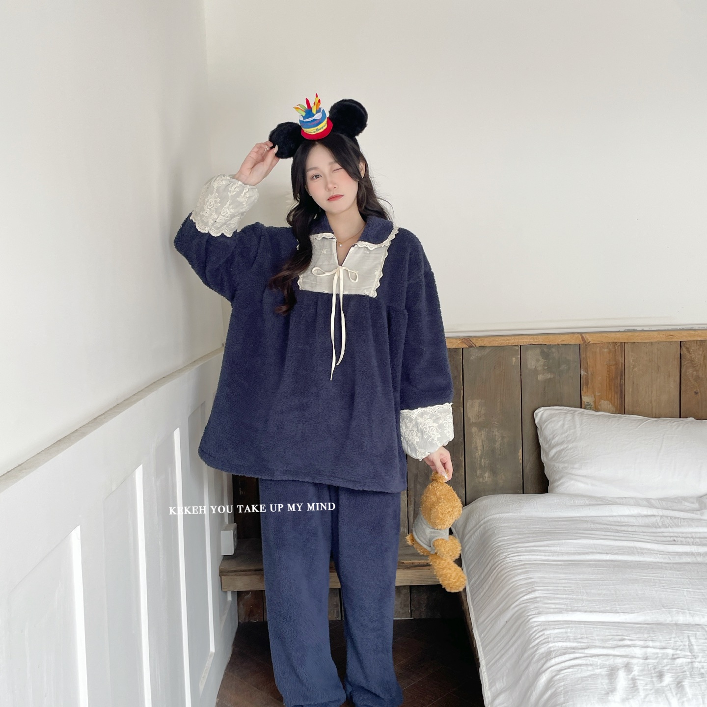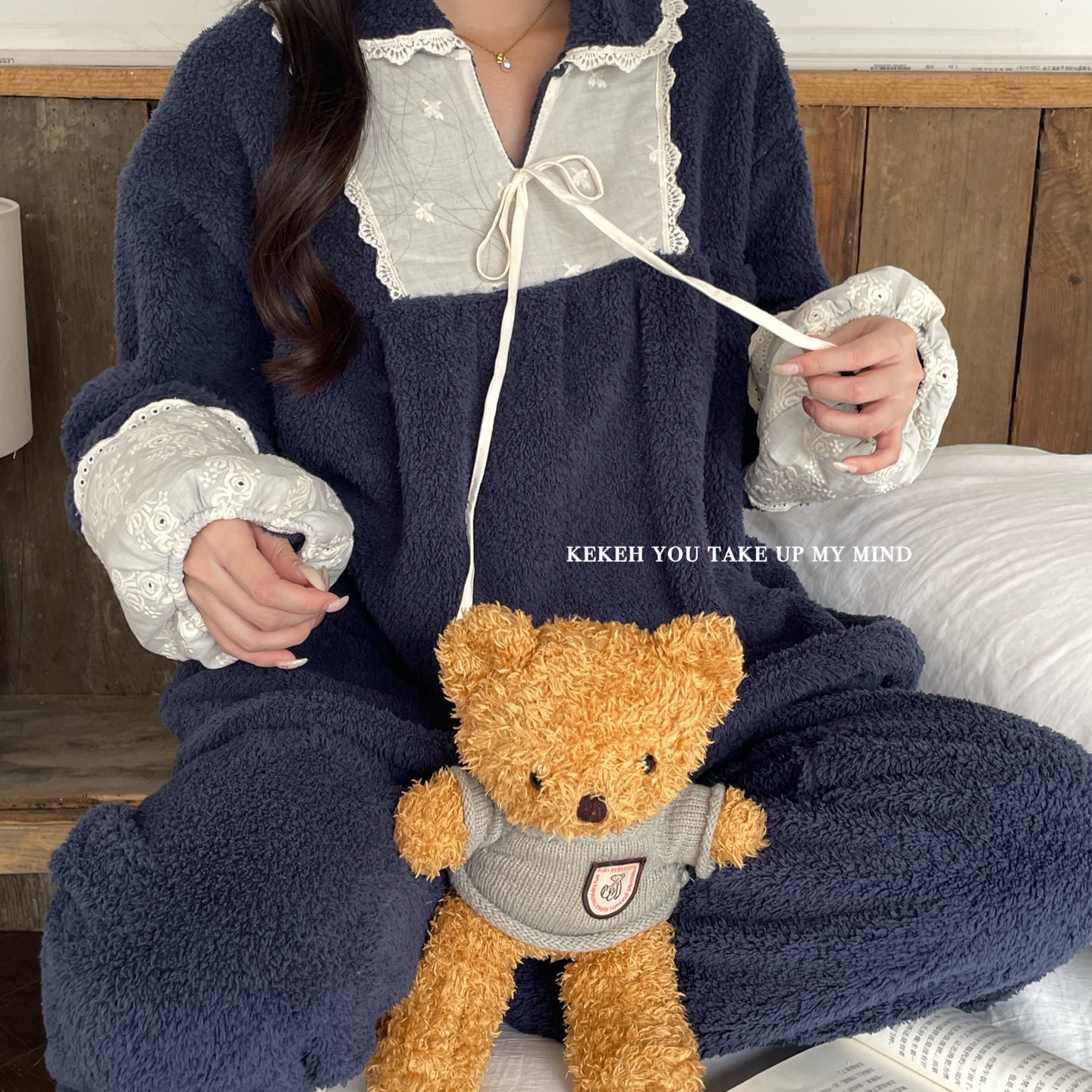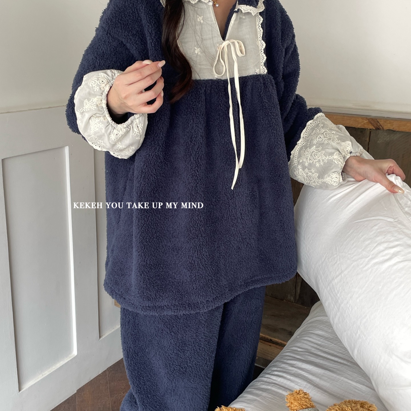 商品名称:妍景家居生活馆 2025新款韩系翻领蝴蝶结双面米粒绒-26404 海涛兰