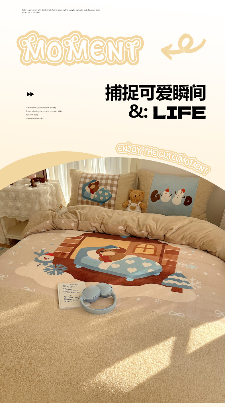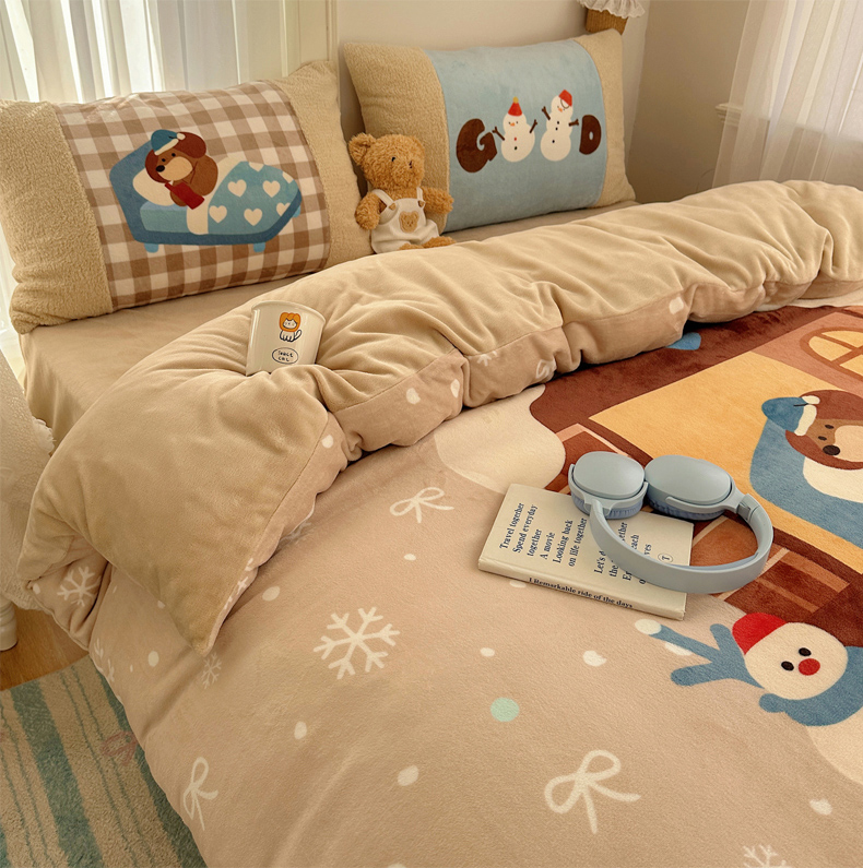 (总)Sweet dreams甜梦 2025新款高克重牛奶绒印花夹棉床笠圣诞款,冬日小猫粉,糖豆,雪人奇趣园