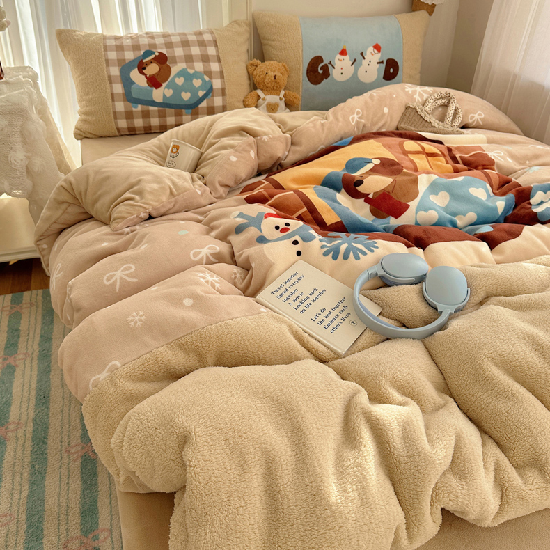 商品名称:Sweet dreams甜梦 2025秋冬数码大版牛奶绒泰迪绒拼接四件套 圣诞小狗