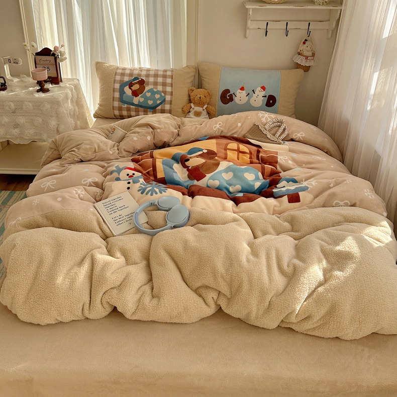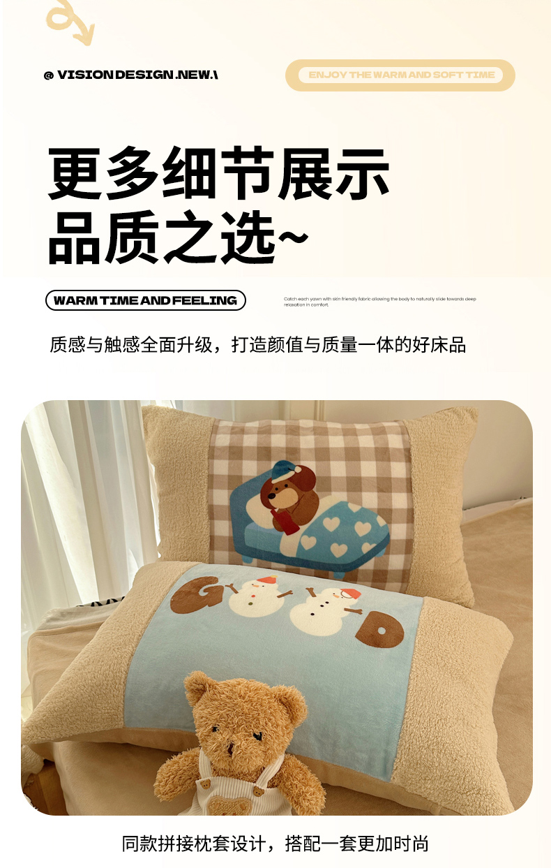 (总)Sweet dreams甜梦 2025秋冬数码大版牛奶绒泰迪绒拼接四件套,圣诞小狗,购物袋小狗,旋转木马,童趣蛋糕,好朋友,蛋糕小熊