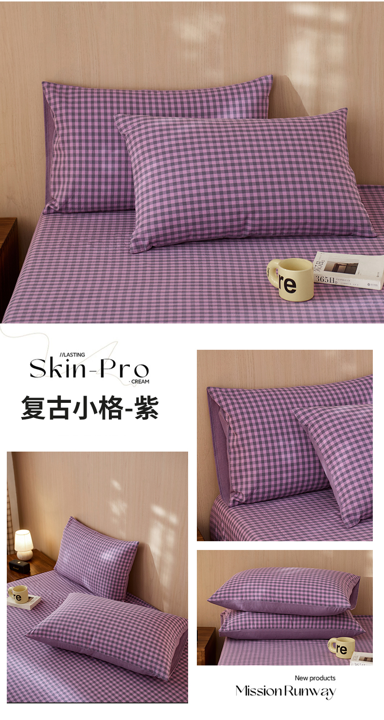 启程家纺 2026新款纯棉水洗棉复古小格多规格系列单品枕套 复古小格-紫