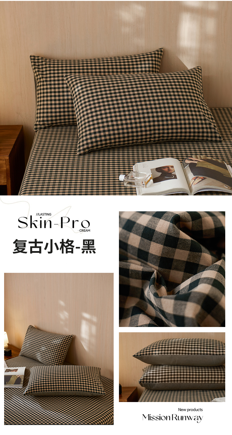 (总)启程家纺 2026新款纯棉水洗棉复古小格多规格系列单品枕套,复古小格-黑,复古小格-红,复古小格-黄,复古小格-咖,复古小格-紫