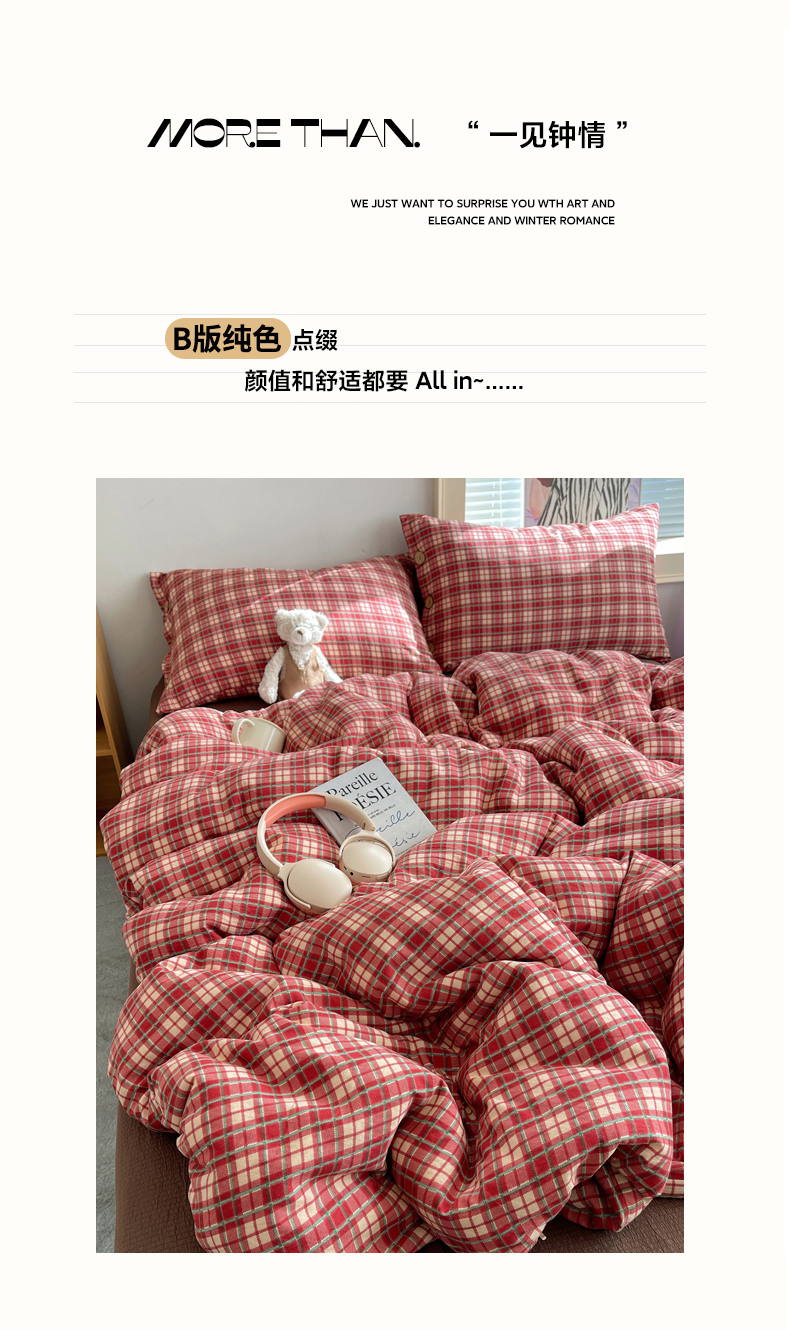 当前位置: 91家纺网 > 商品网购 > 床品套件 > 四件套 > 化纤普通四件套 > 优兰朵 2025新款新年热款格子条纹双拼繁花云感木棉纽扣款宿舍新款老钱风四件套 圣诞