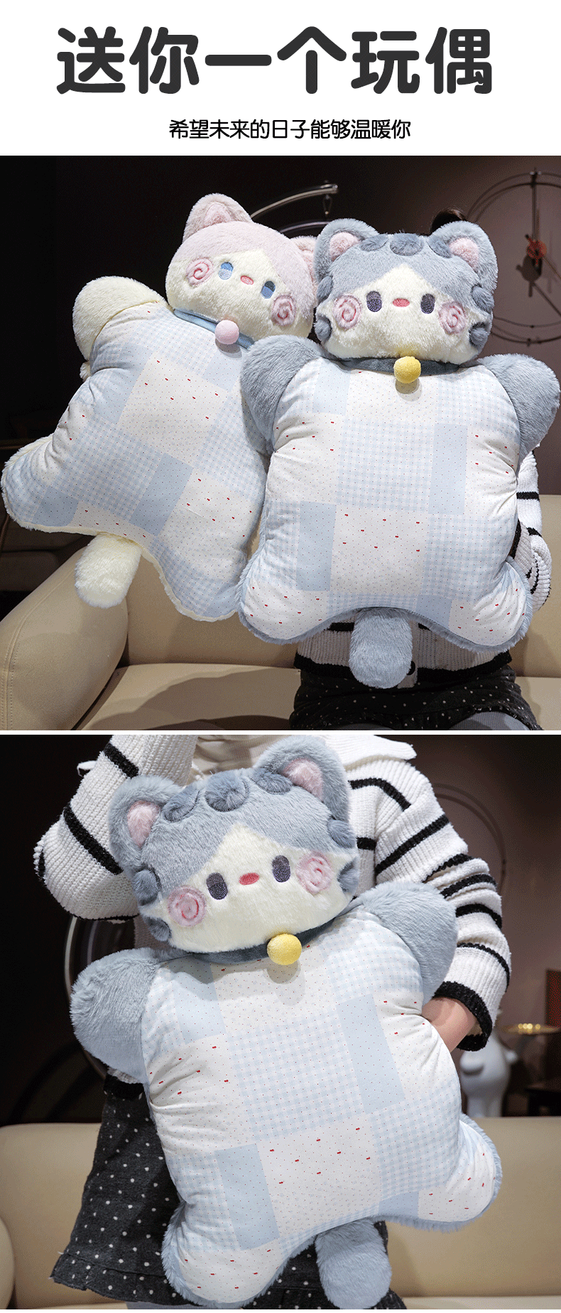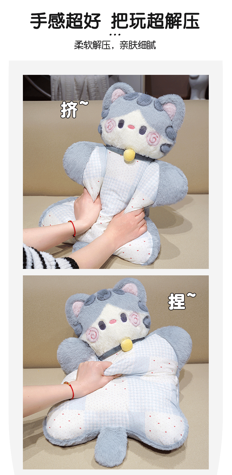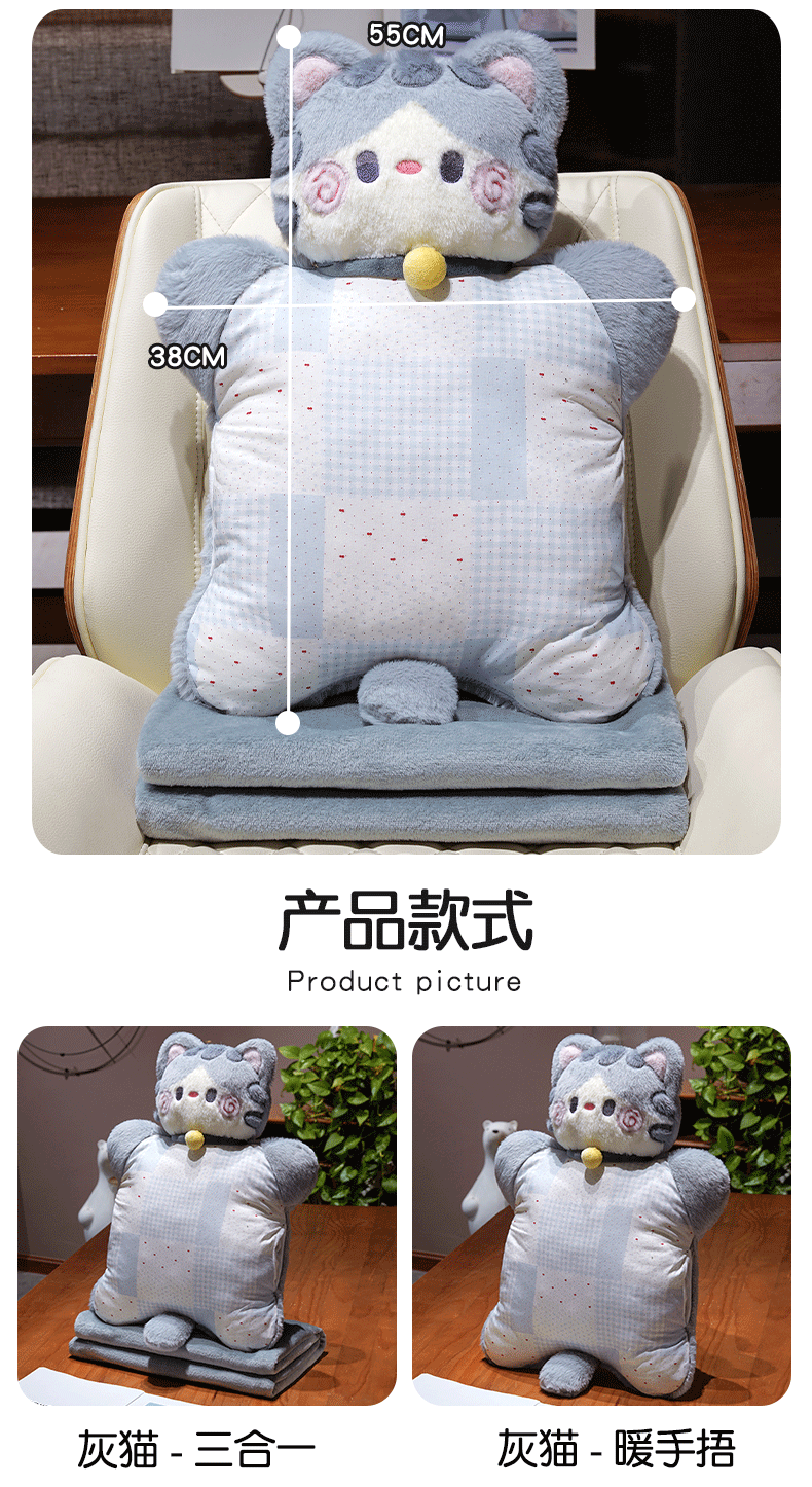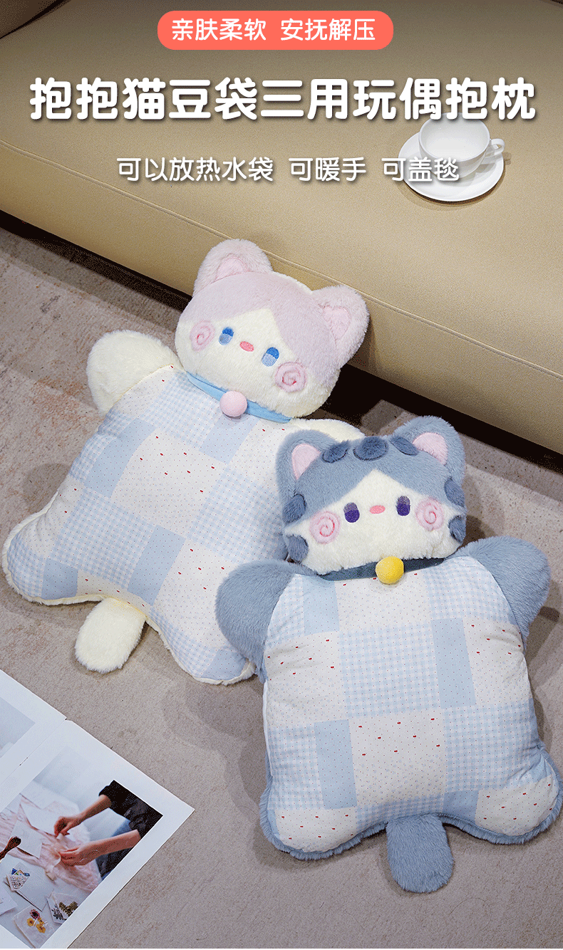 (总)仟亿莱 2025新款抱抱猫豆袋三用玩偶抱枕,组合图仅做展示不可下单,三用白猫,三用灰猫,三用奶咖猫