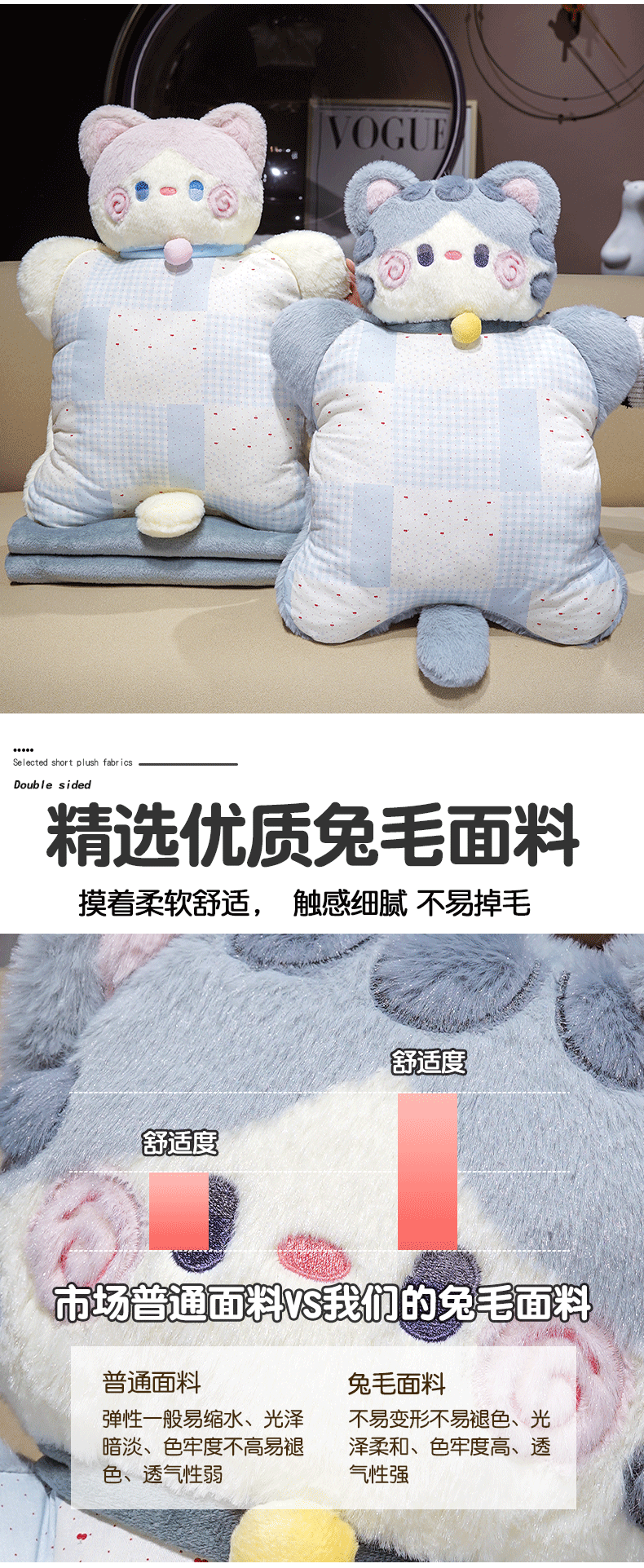 商品名称:仟亿莱 2025新款抱抱猫豆袋三用玩偶抱枕 三用奶咖猫