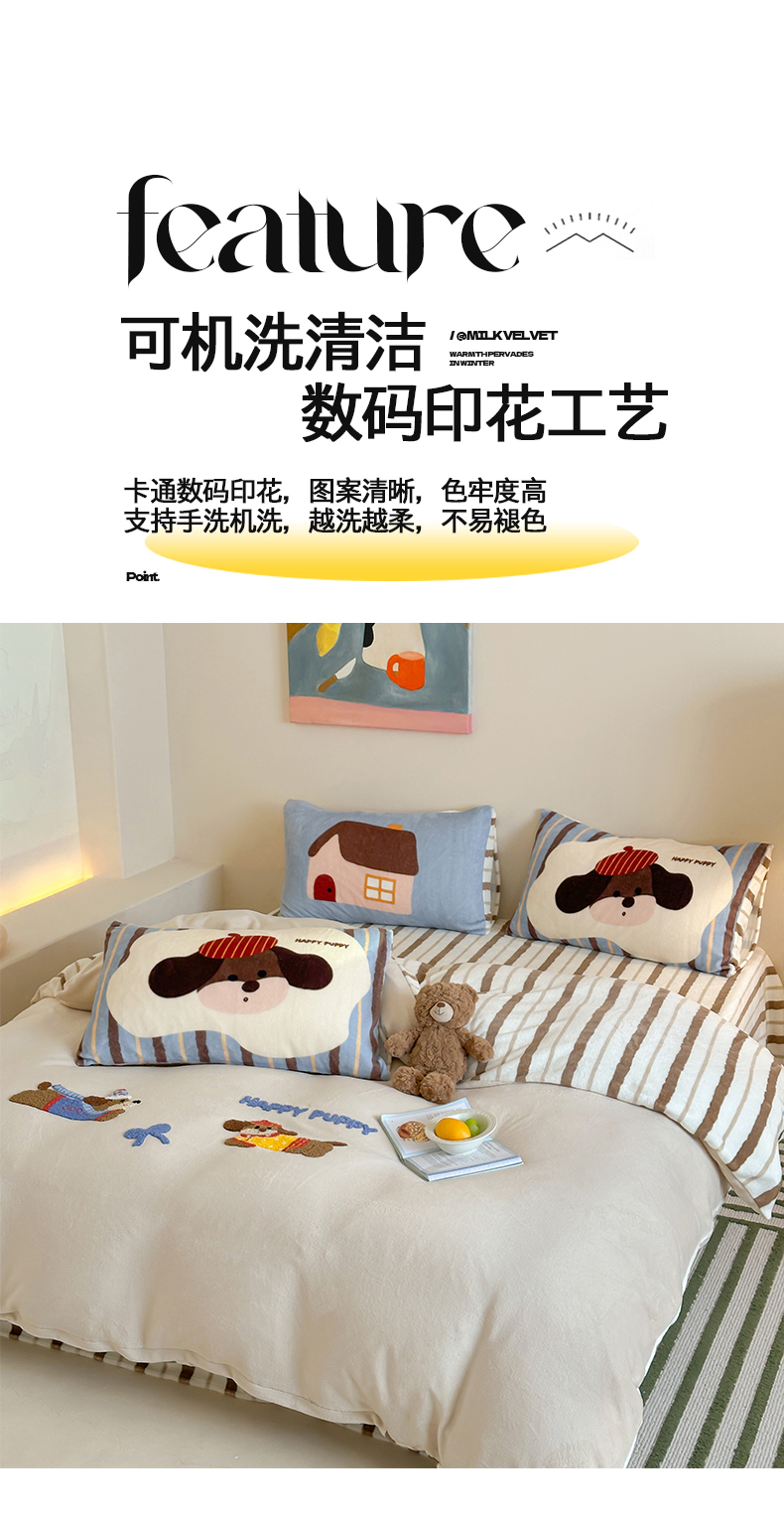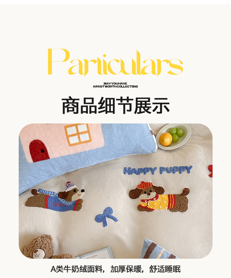 当前位置: 91家纺网 > 商品网购 > 床品套件 > 四件套 > 牛奶绒四件套 > 桃子家居 2025新款A类毛巾绣立体数码印花可爱卡通圣诞印加绣加厚牛奶绒系列四件套 绒印加绣-奶油欢乐狗