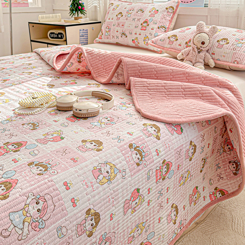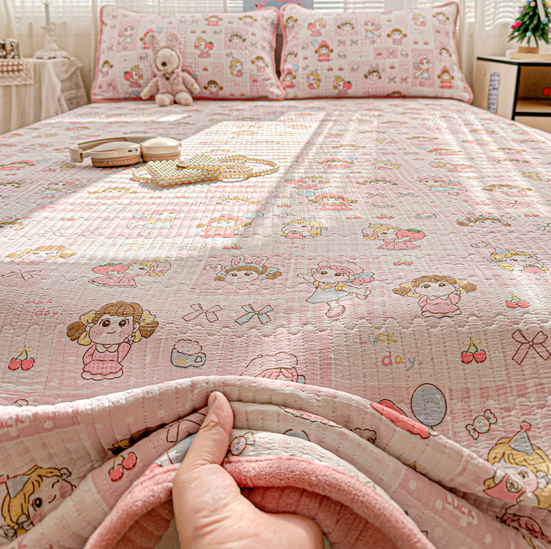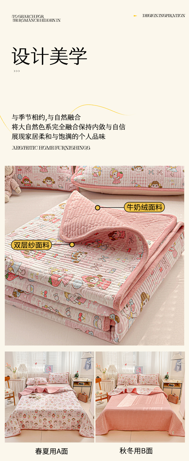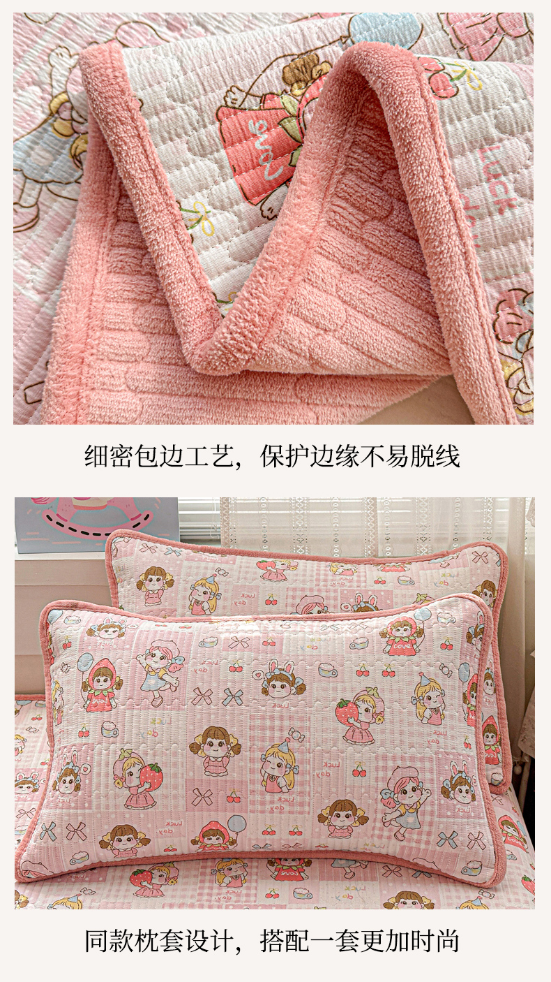 恒尚居 2026新款A双层纱B牛奶绒床盖双面两用夹棉床单学生床垫床褥子系列二 棒棒糖女孩【A双层纱-B牛奶绒】