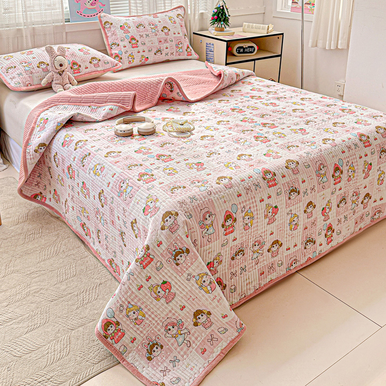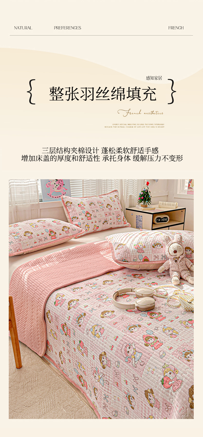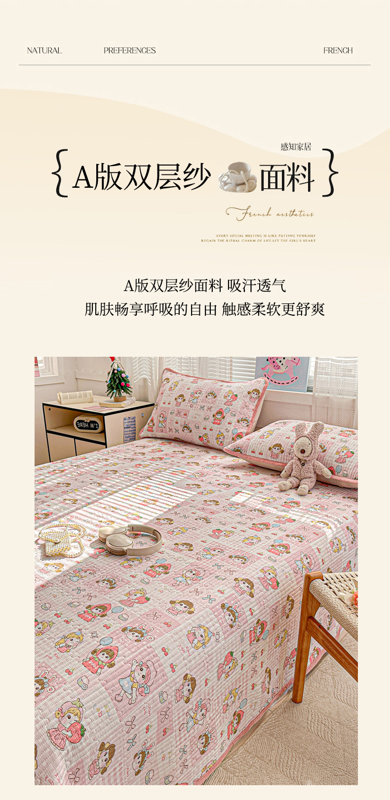 恒尚居 2026新款A双层纱B牛奶绒床盖双面两用夹棉床单学生床垫床褥子系列二 棒棒糖女孩【A双层纱-B牛奶绒】