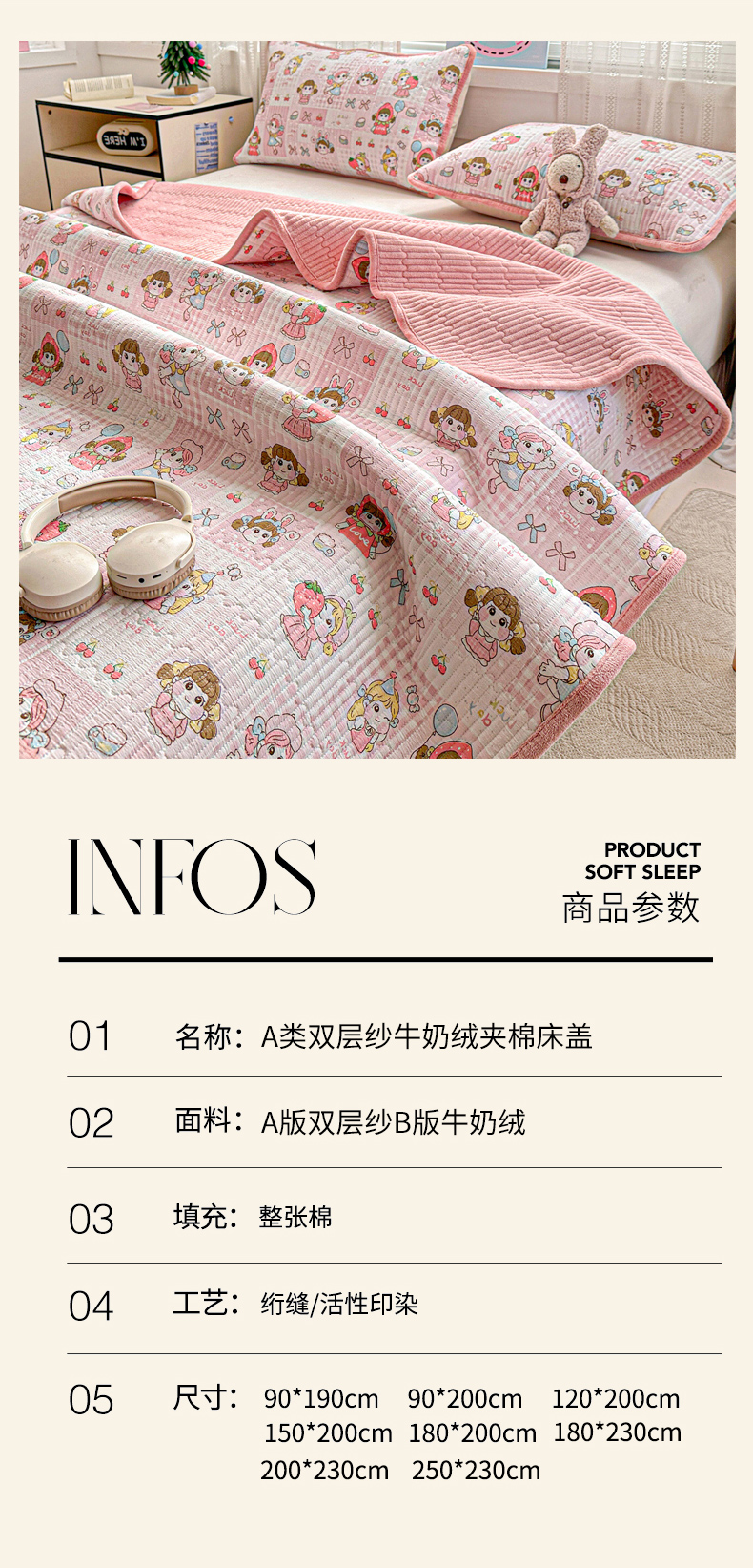 (总)恒尚居 2026新款A双层纱B牛奶绒床盖双面两用夹棉床单学生床垫床褥子系列二,KT猫【A双层纱-B牛奶绒】,拉布布【A双层纱-B牛奶绒】,贝拉格-咖啡【A双层纱-B牛奶绒】,波点狗狗【A双层纱-B牛奶绒】,花篮兔【A双层纱-B牛奶绒】,格子小熊【A双层纱-B牛奶绒】,草莓世界【A双层纱-B牛奶绒】,棒棒糖女孩【A双层纱-B牛奶绒】,蓝调【A双层纱-B牛奶绒】,落叶【A双层纱-B牛奶绒】,萌宠乐园【A双层纱-B牛奶绒】,兔子乐队【A双层纱-B牛奶绒】,完美日记【A双层纱-B牛奶绒】,汪汪队【A双层纱-B牛奶绒】,星月【A双层纱-B牛奶绒】,阳光庄园【A双层纱-B牛奶绒】,英伦格【A双层纱-B牛奶绒】,紫罗花【A双层纱-B牛奶绒】,组合图仅供参考不可下单