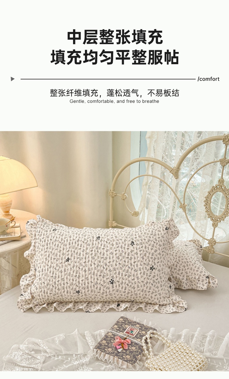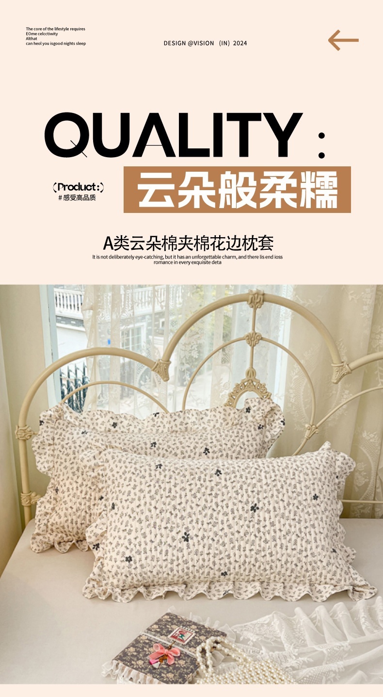 商品名称:梦舒羽 2026新款A类云朵棉夹棉花边枕套宿舍单人一只装枕芯内胆套-单人枕套 花无意(花边夹棉)