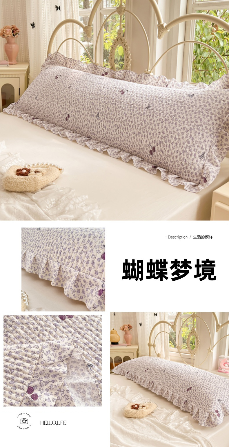 • 91家纺网 家纺一手货源 找家纺 梦舒羽 2026新款A类云朵棉夹棉花边枕套宿舍情侣双人加长枕芯内胆套-双人枕套 蝴蝶梦境(花边夹棉)