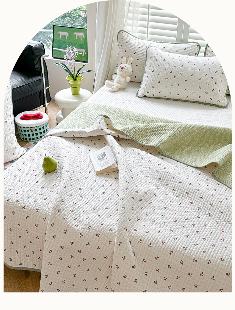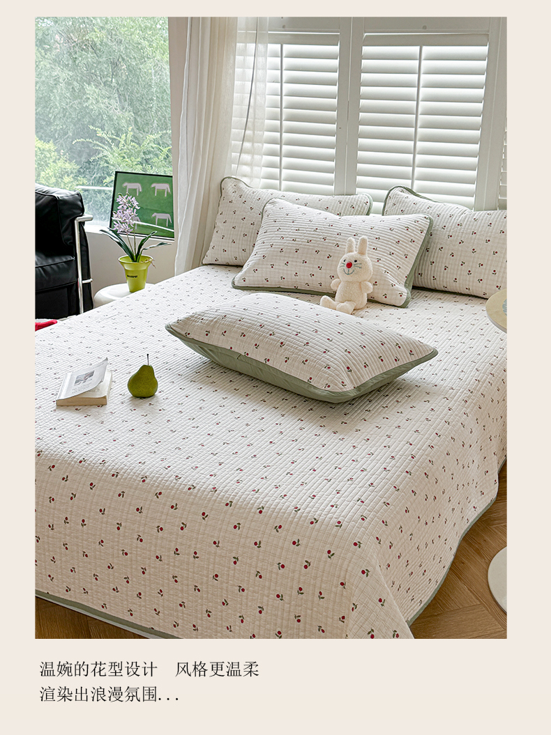 茉夕家纺 2026新款春季纯棉棉花印花单品床盖单件床盖 樱桃多多