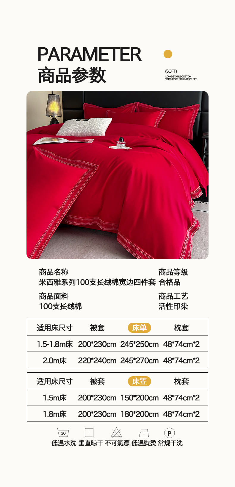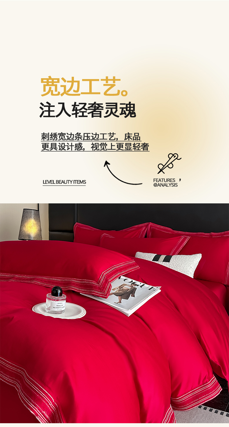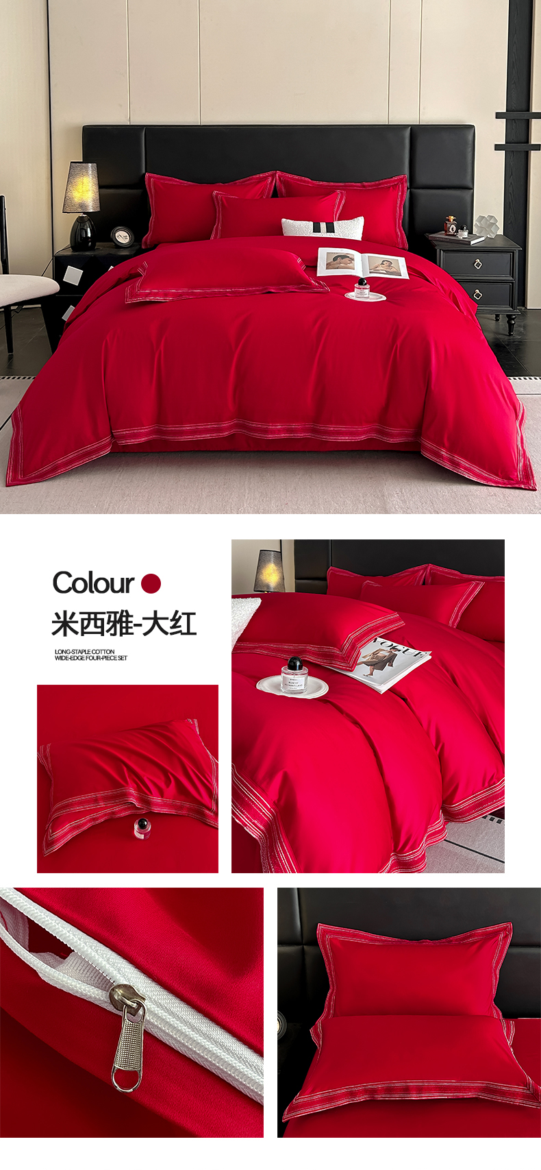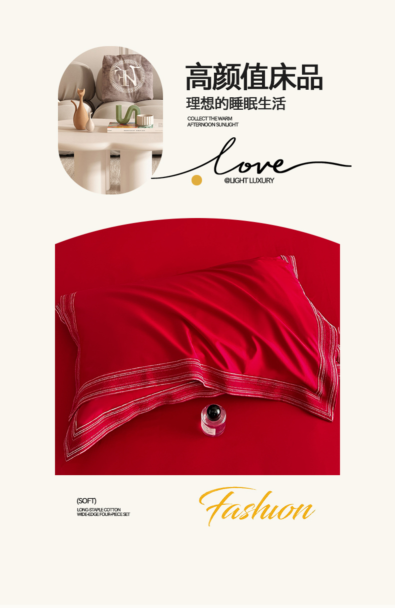 当前位置: 91家纺网 > 商品网购 > 床品套件 > 四件套 > 长绒棉四件套 > 置顶家纺 2025新款50双股支长绒棉纯棉宽边四件套-米西雅 米西雅-大红