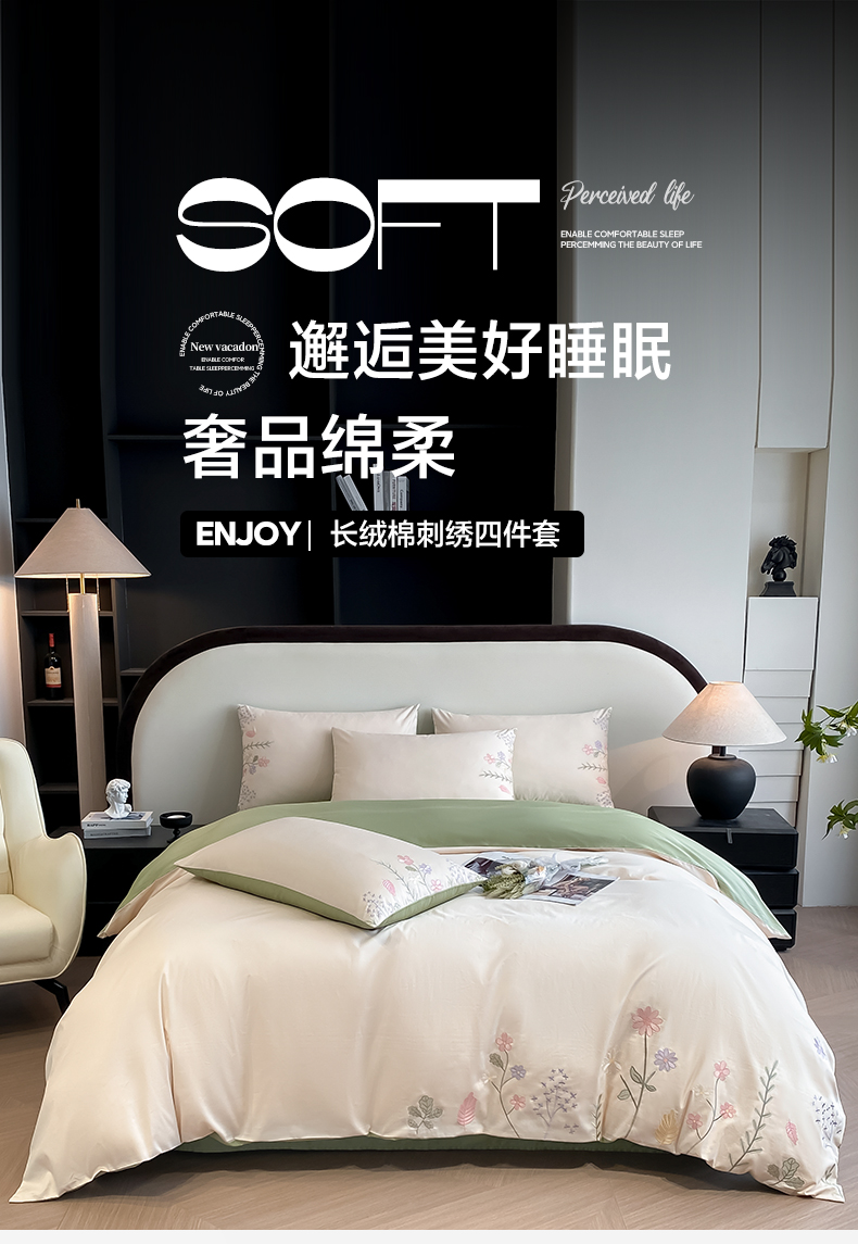 (总)欣宜家纺 2026春夏新款60支A类新疆长绒棉刺绣轻奢风四件套,樱花-白粉,樱花-清香绿,樱花-少女粉,樱花-天天蓝,樱花-香芋紫