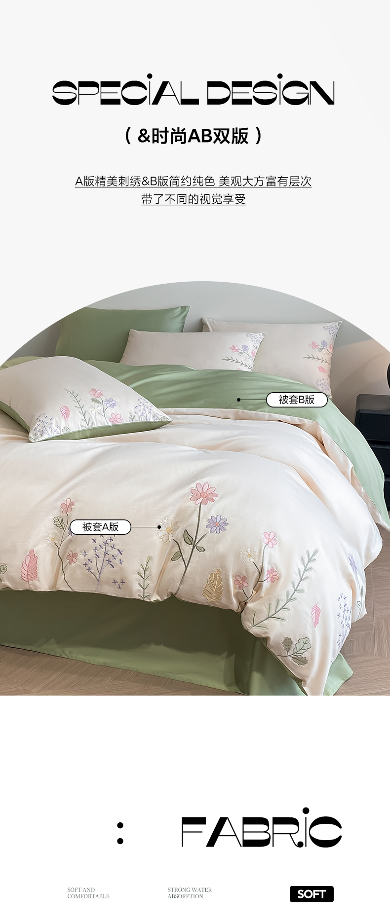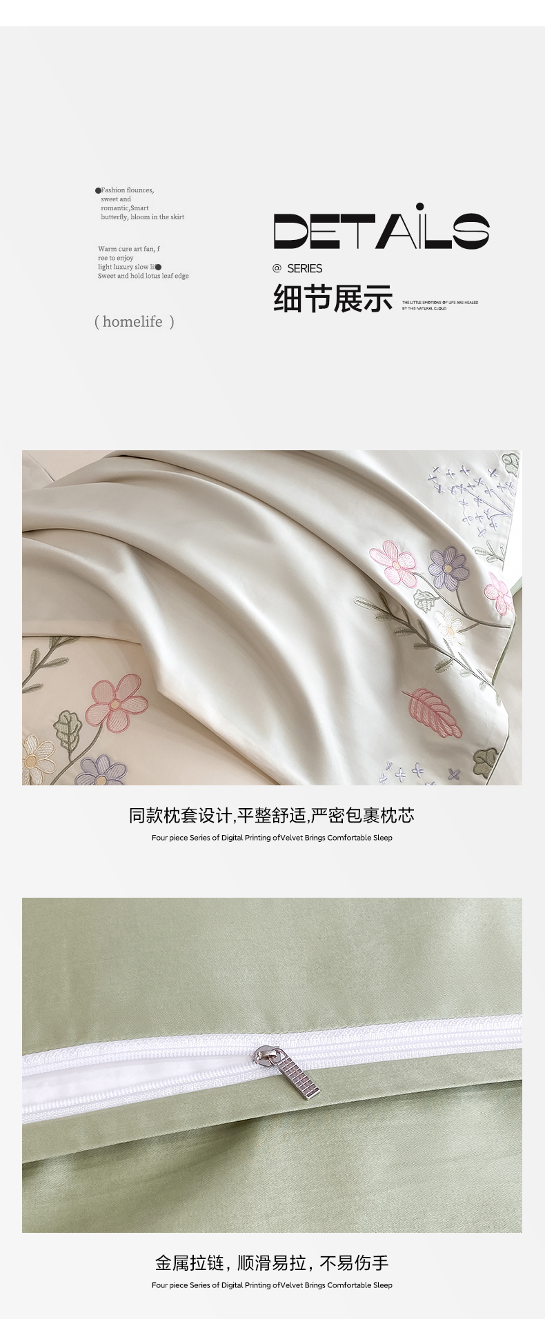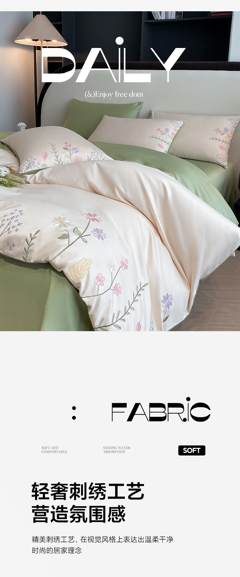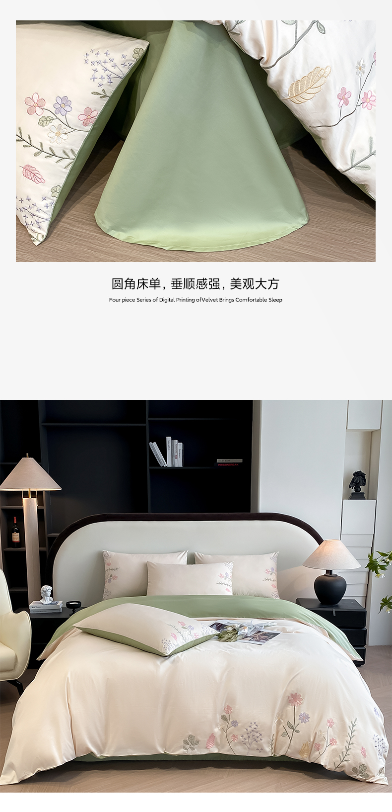 欣宜家纺 2025新款全棉长绒棉刺绣绣花款纯棉四件套高端礼盒款-洛可系列 洛可可-白绿