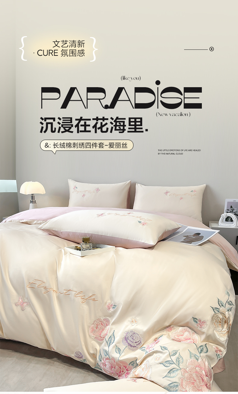 (总)欣宜家纺 2025新款纯棉全棉长绒棉刺绣绣花四件套高端礼盒款-爱丽丝