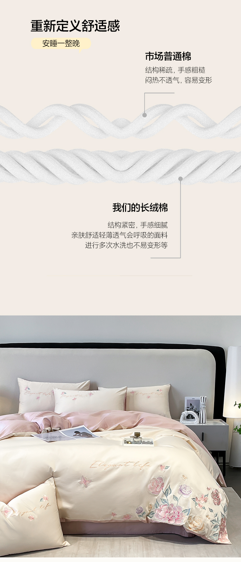 (总)欣宜家纺 2026春夏新款60支A类新疆长绒棉刺绣轻奢风四件套,樱花-白粉,樱花-清香绿,樱花-少女粉,樱花-天天蓝,樱花-香芋紫
