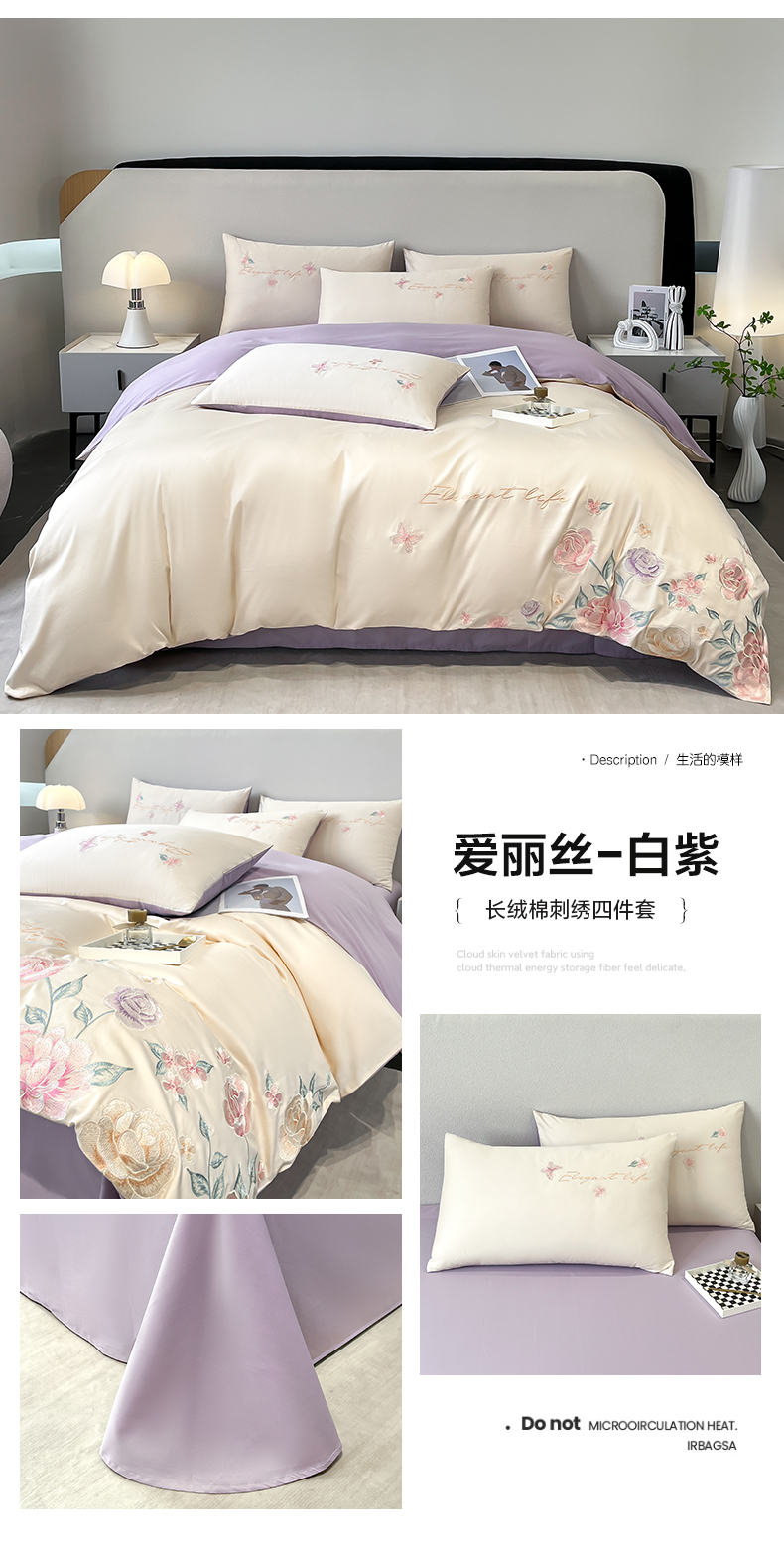 (总)欣宜家纺 2026春夏新款60支A类新疆长绒棉刺绣全棉四件套纯棉床品套件,玛丽-香芋紫,玛丽-梦幻蓝,玛丽-奶白,玛丽-轻奢粉,玛丽-石灰