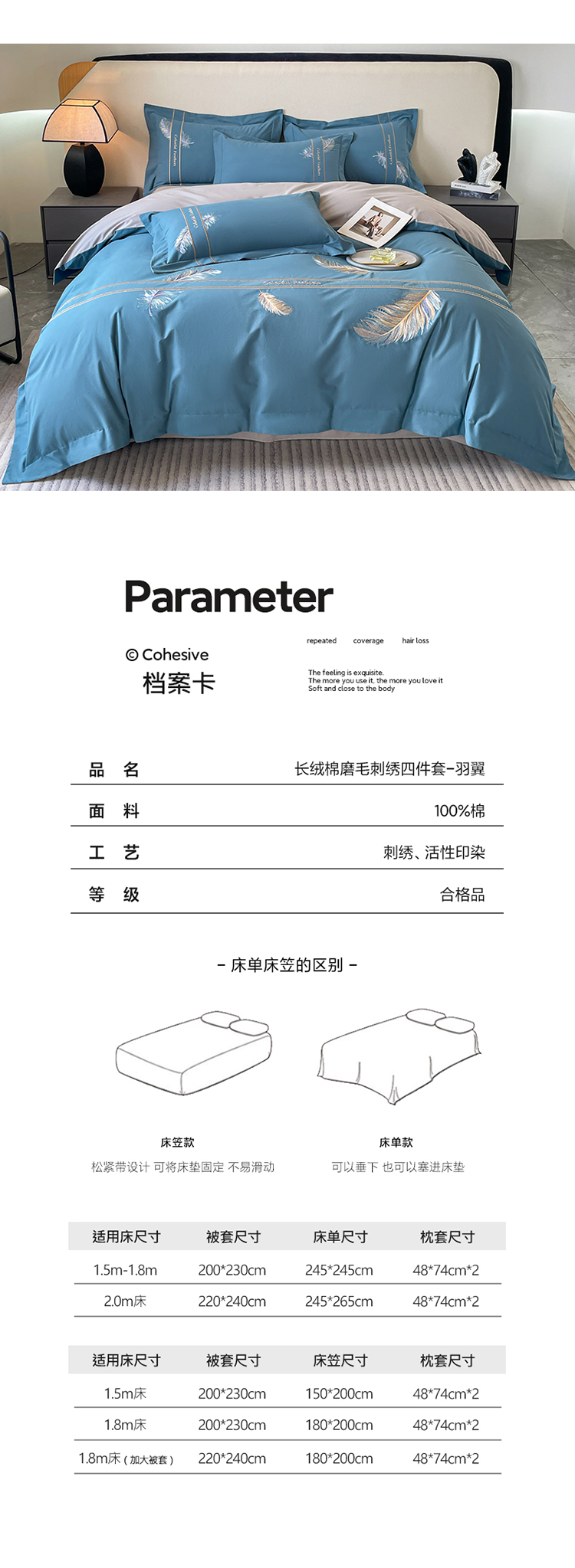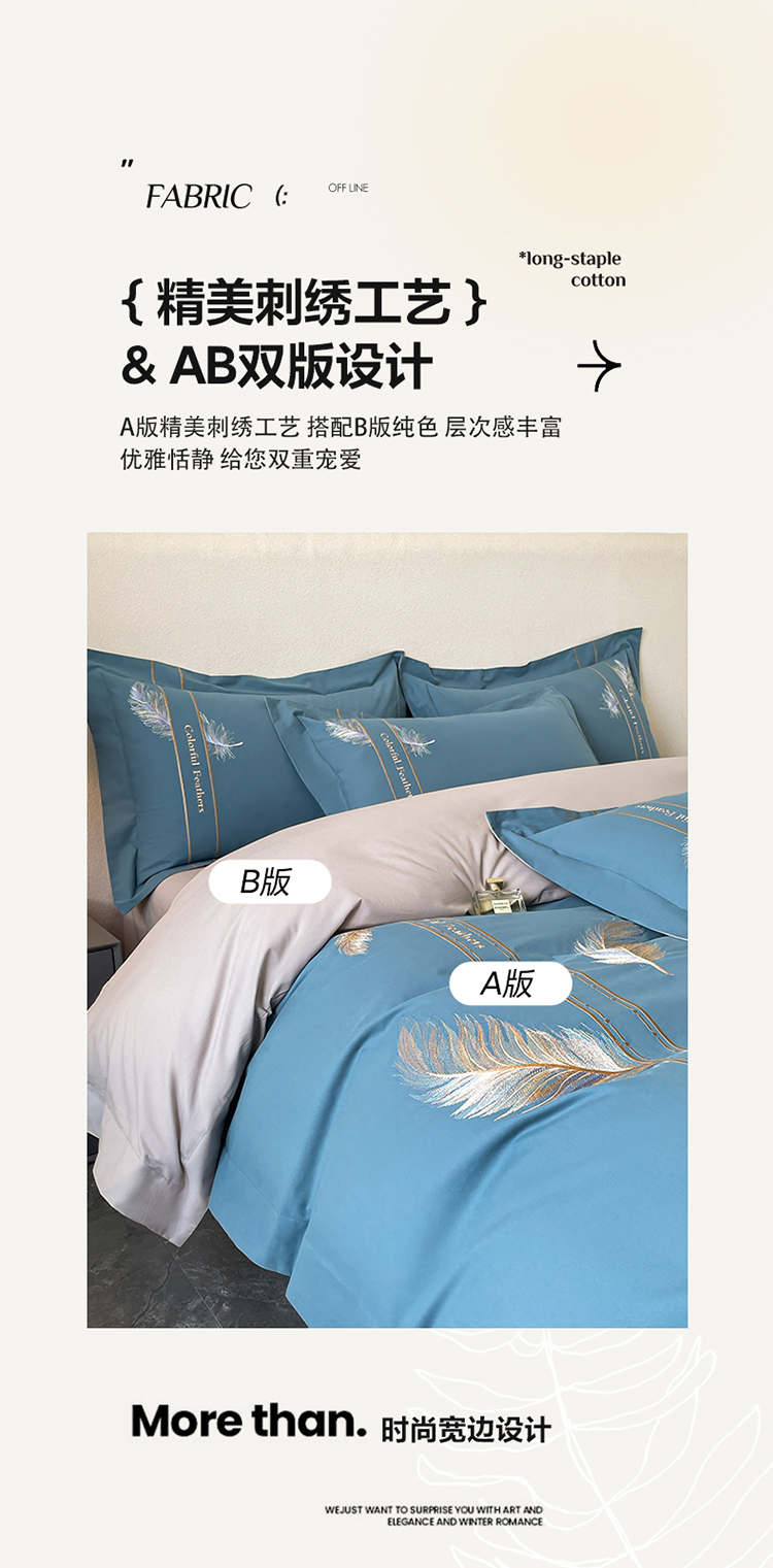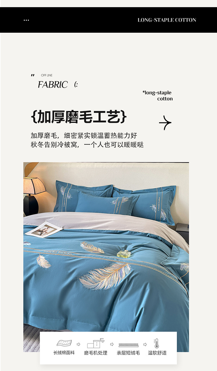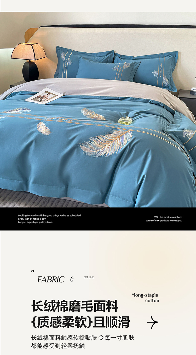 商品名称:欣宜家纺 2025新款纯棉全棉长绒棉磨毛不掉毛高端四件套羽翼系列带礼盒 宾利蓝