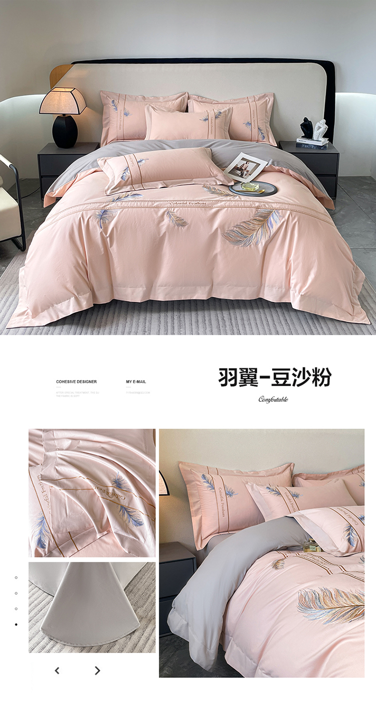(总)欣宜家纺 2026春夏新款60支A类新疆长绒棉刺绣轻奢风四件套,樱花-白粉,樱花-清香绿,樱花-少女粉,樱花-天天蓝,樱花-香芋紫