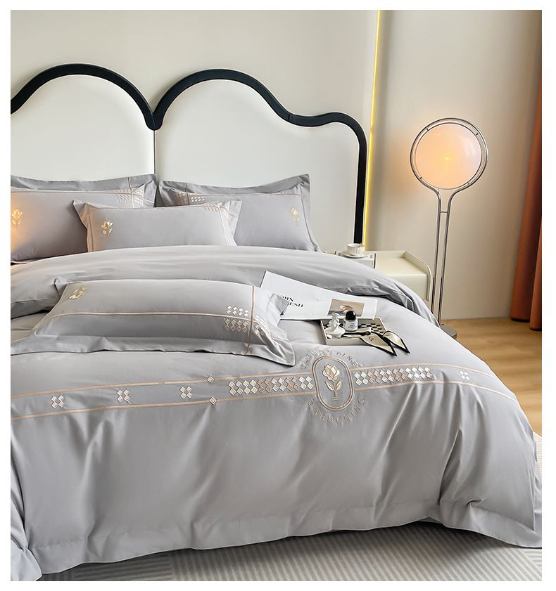 欣宜家纺 2025新款纯棉全棉长绒棉磨毛绣花四件套克里斯系列刺绣套件带礼盒 克里斯-绅士灰