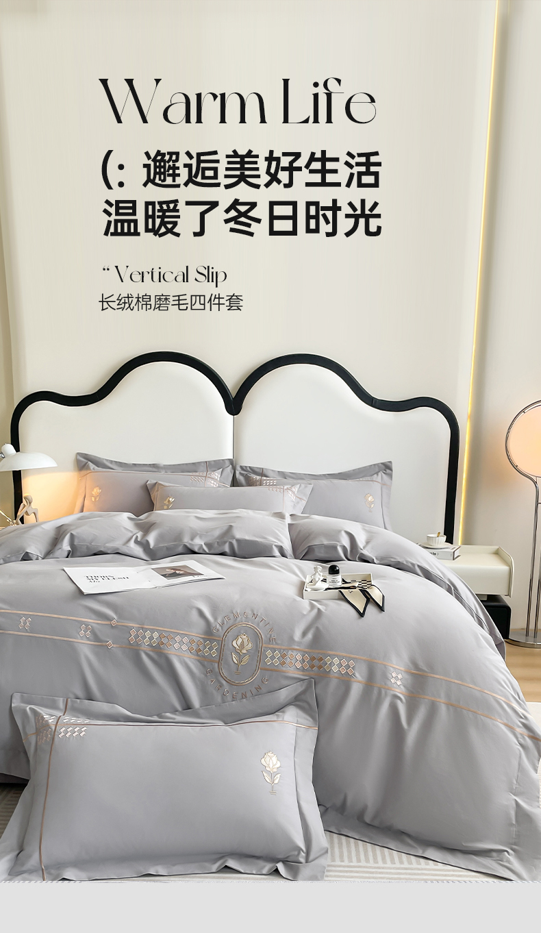 商品名称:欣宜家纺 2025新款纯棉全棉长绒棉磨毛绣花四件套克里斯系列刺绣套件带礼盒 克里斯-绅士灰