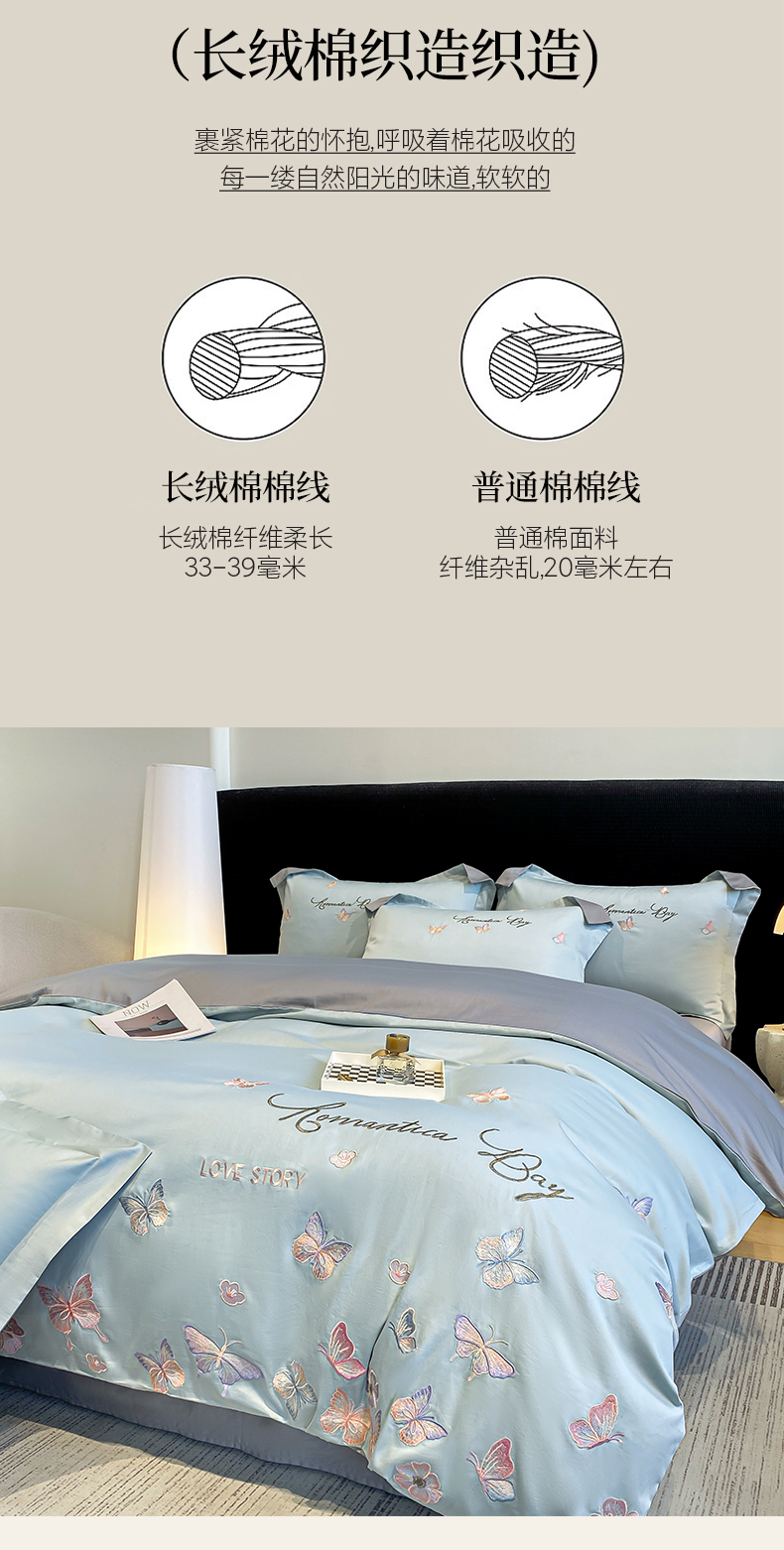 (总)欣宜家纺 2026春夏新款A类60支长绒棉刺绣四件套--蝶纷飞系列,蝶纷飞-粉,蝶纷飞-紫,蝶纷飞-蓝,蝶纷飞-绿