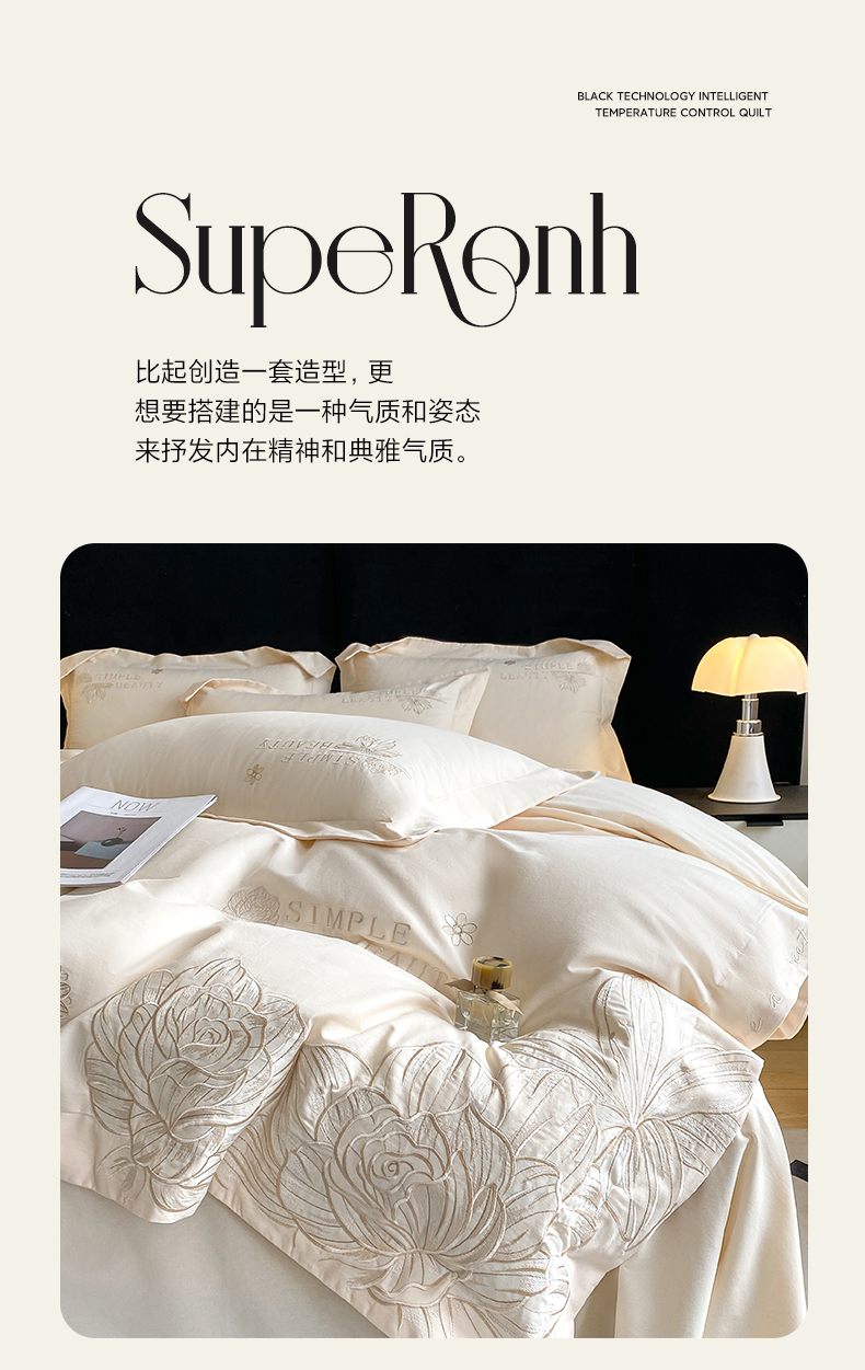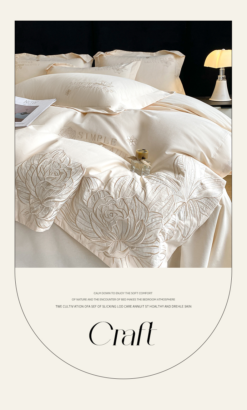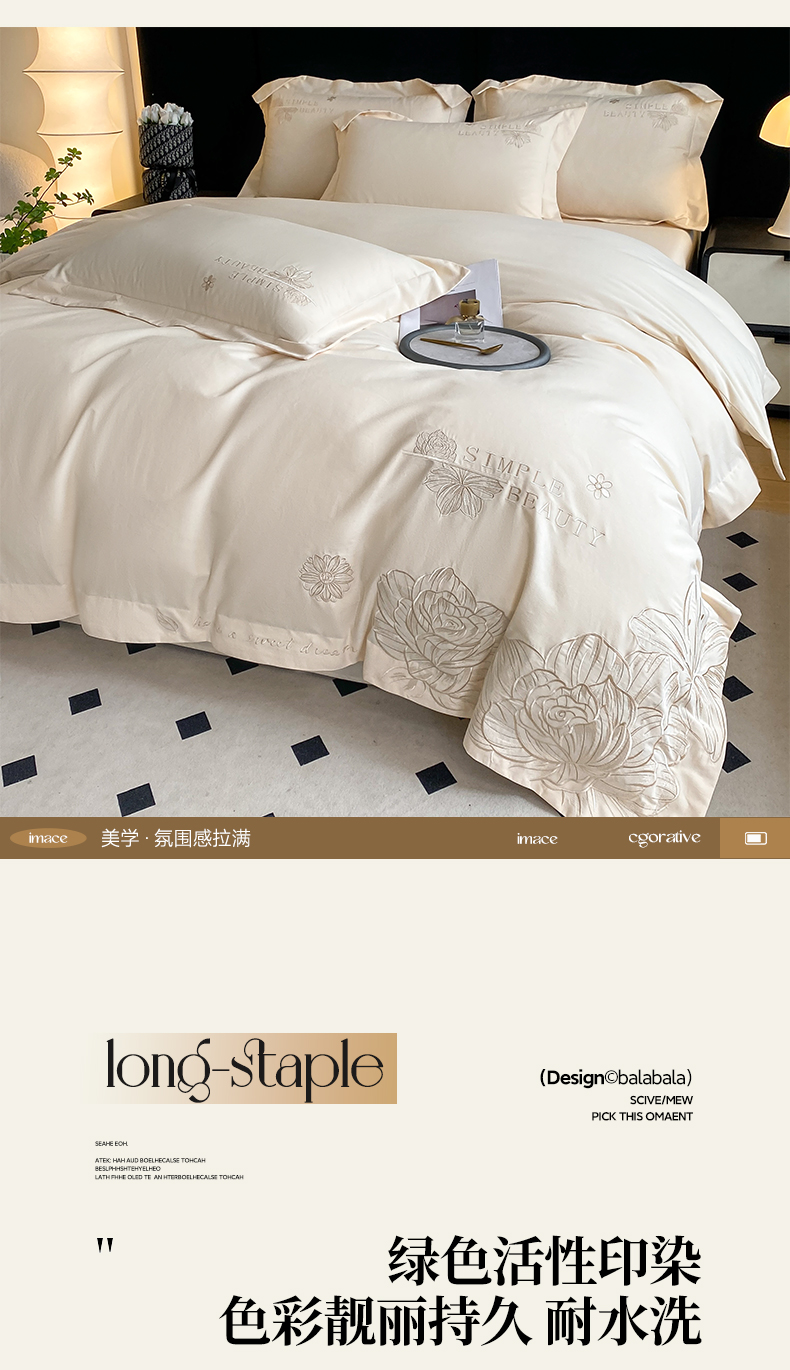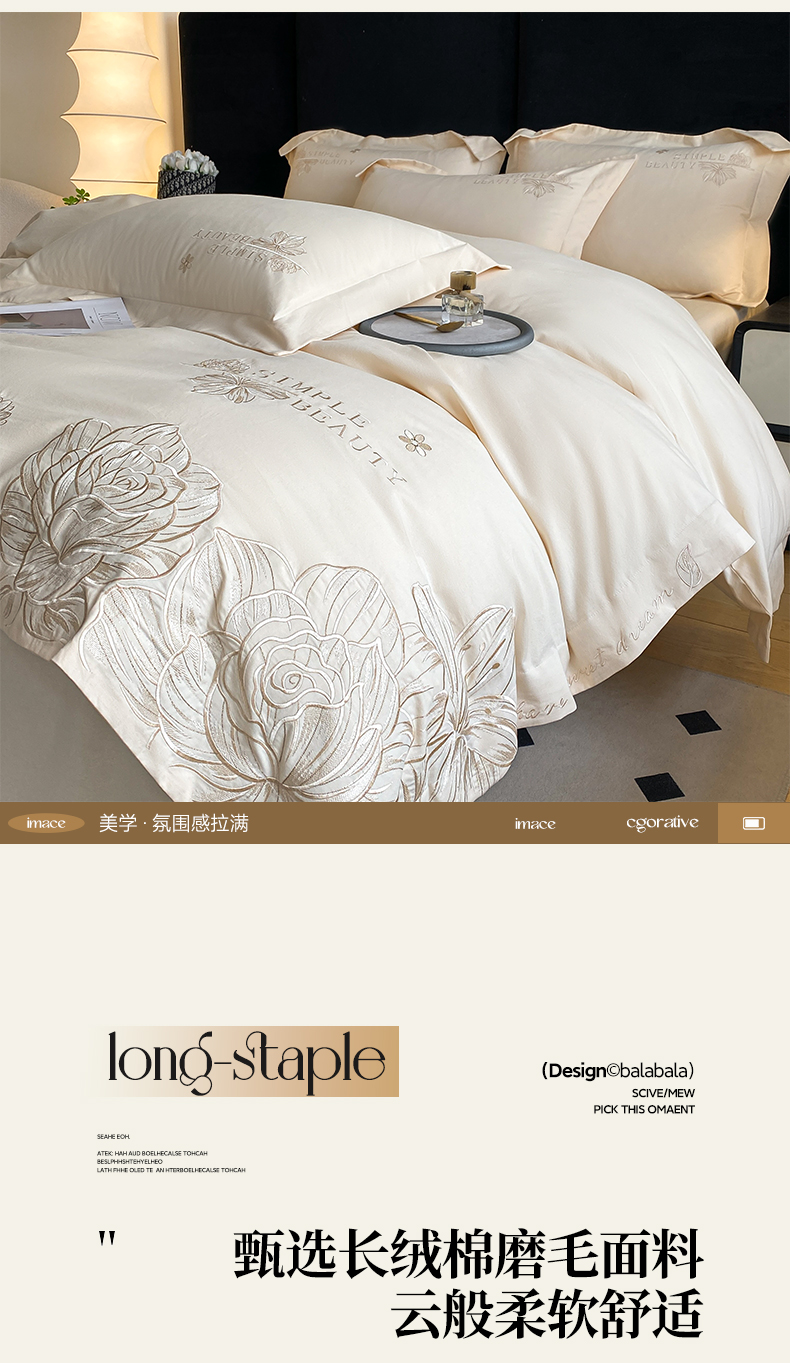 欣宜家纺 2025新款纯棉全棉长绒棉磨毛不掉毛刺绣绣花四件套-赫尔系列 奶昔白