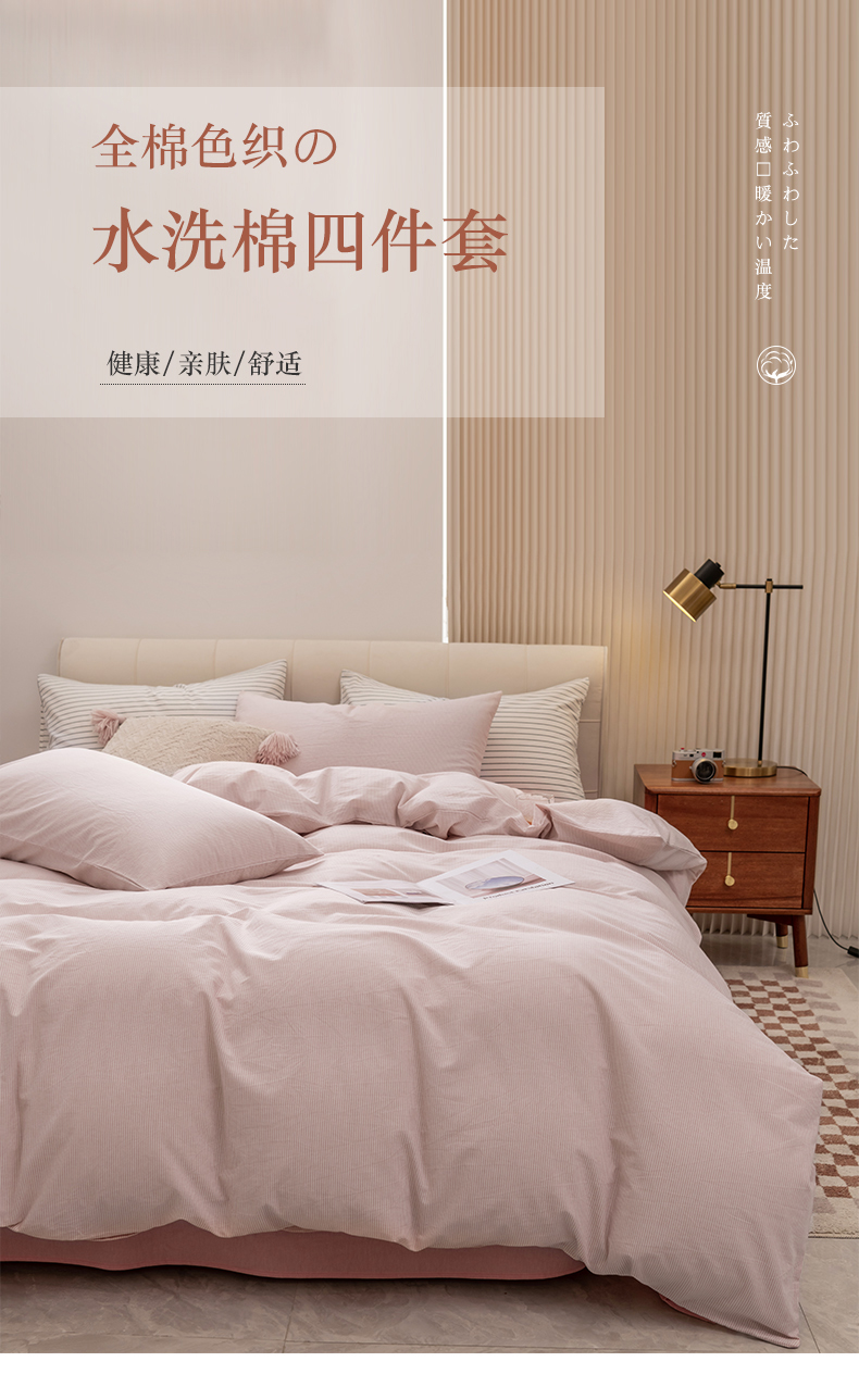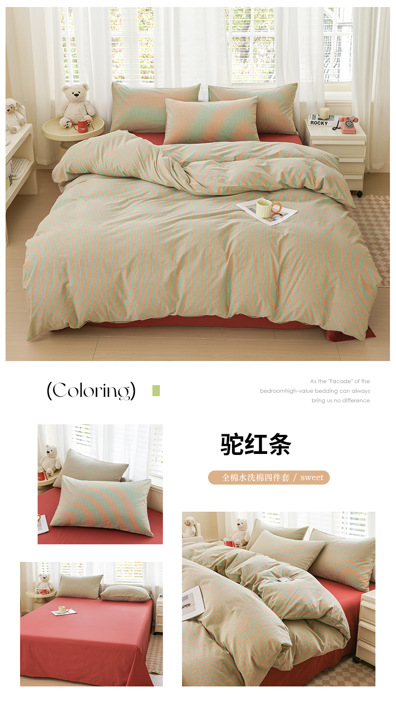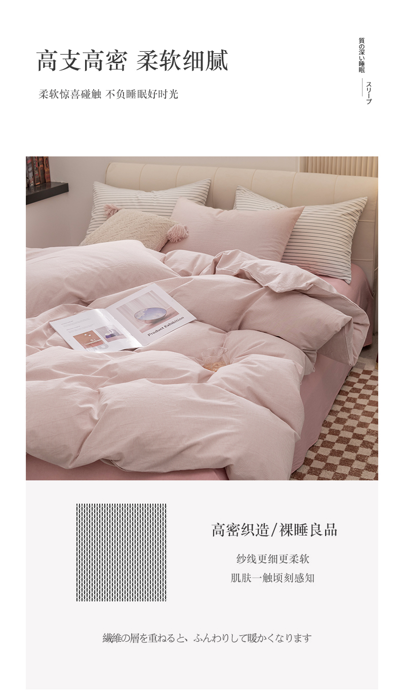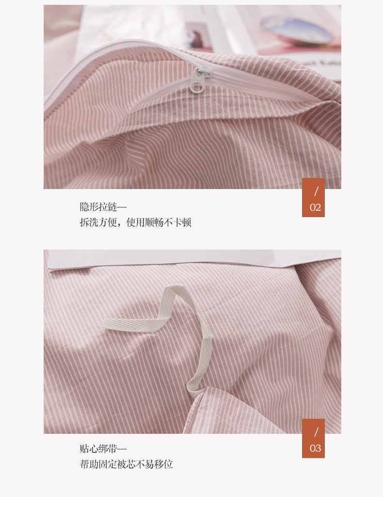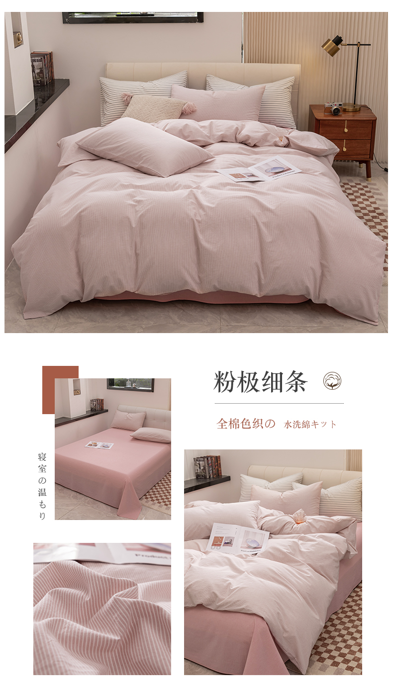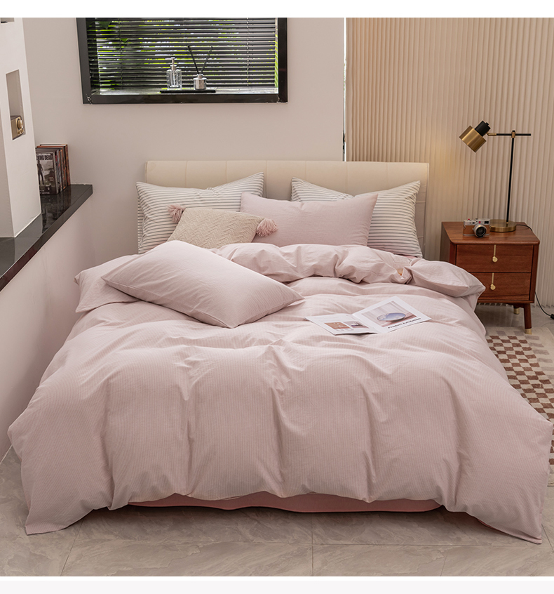当前位置: 91家纺网 > 商品网购 > 床品套件 > 四件套 > 水洗棉四件套 > 柠萌家居 2026新款色织水洗棉四件套单被套 粉极细条