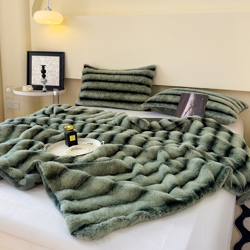 欣宜家纺 2025新款兔兔绒牛奶绒加厚兔毛毯保暖毯子 咖啡