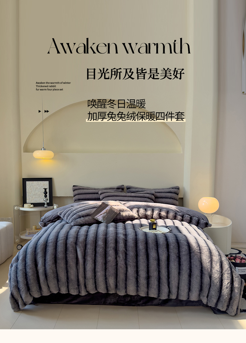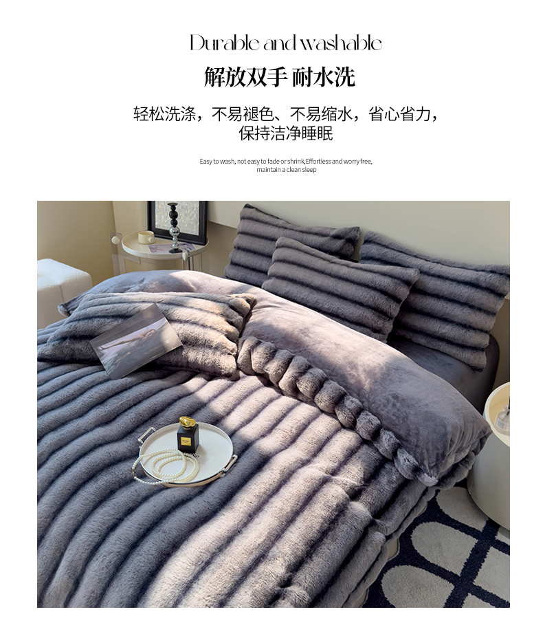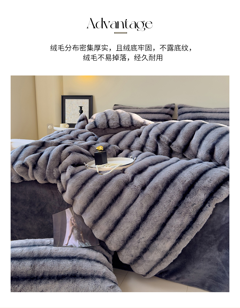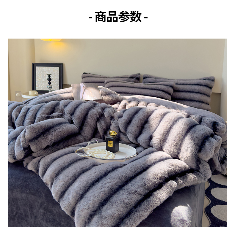 商品名称:欣宜家纺 2025新款兔兔绒牛奶绒加厚兔毛保暖四件套 深灰