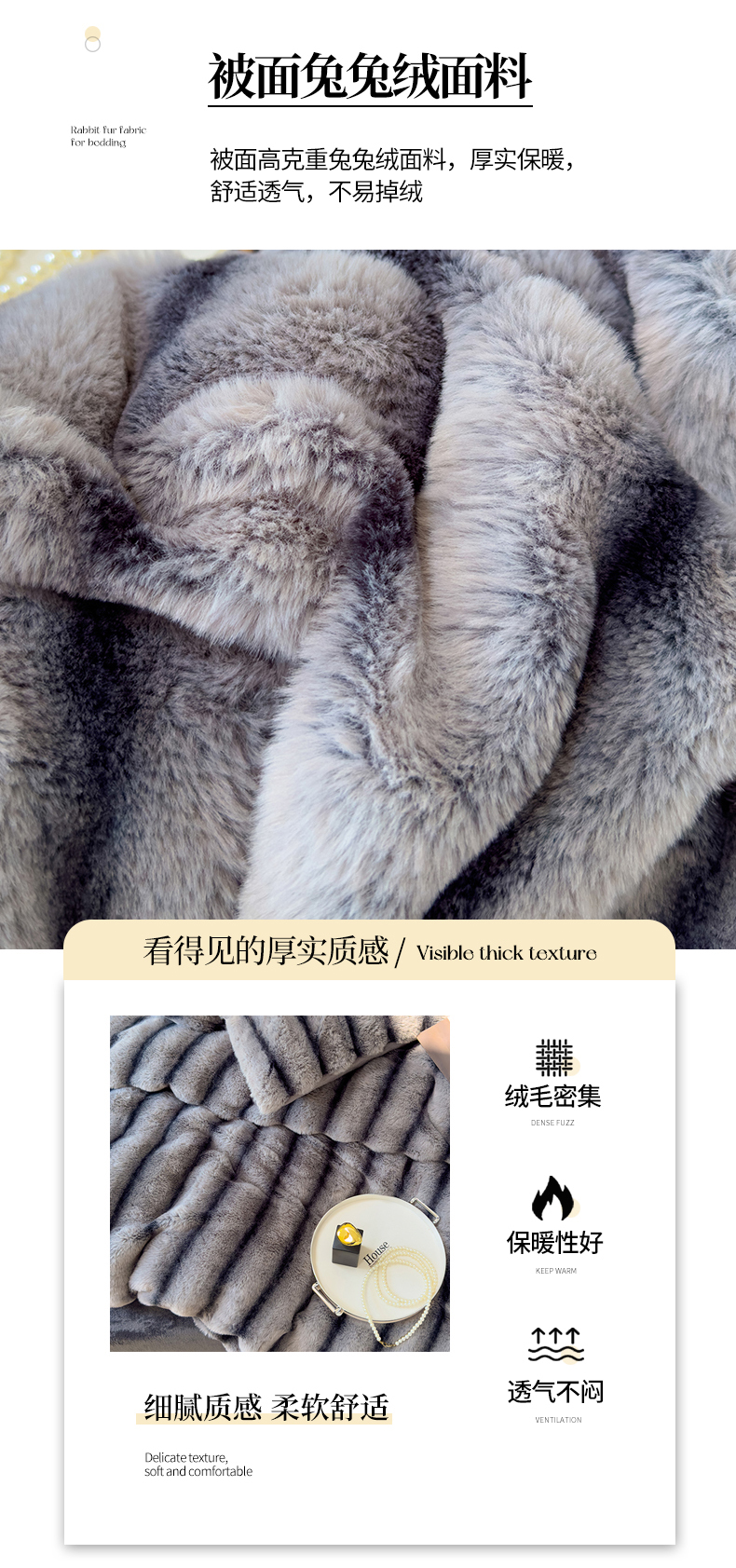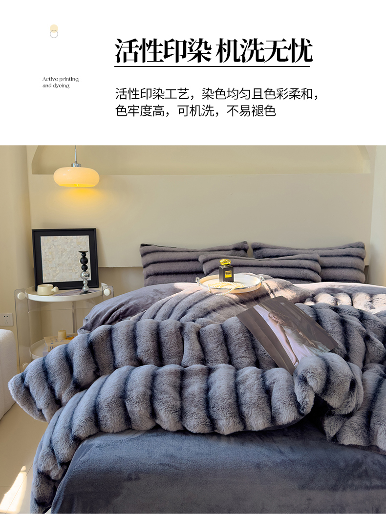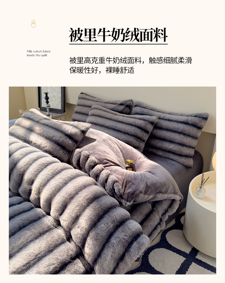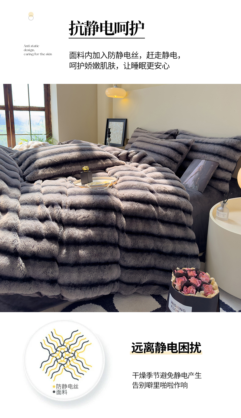 商品名称:欣宜家纺 2025新款兔兔绒牛奶绒加厚兔毛保暖四件套 深灰